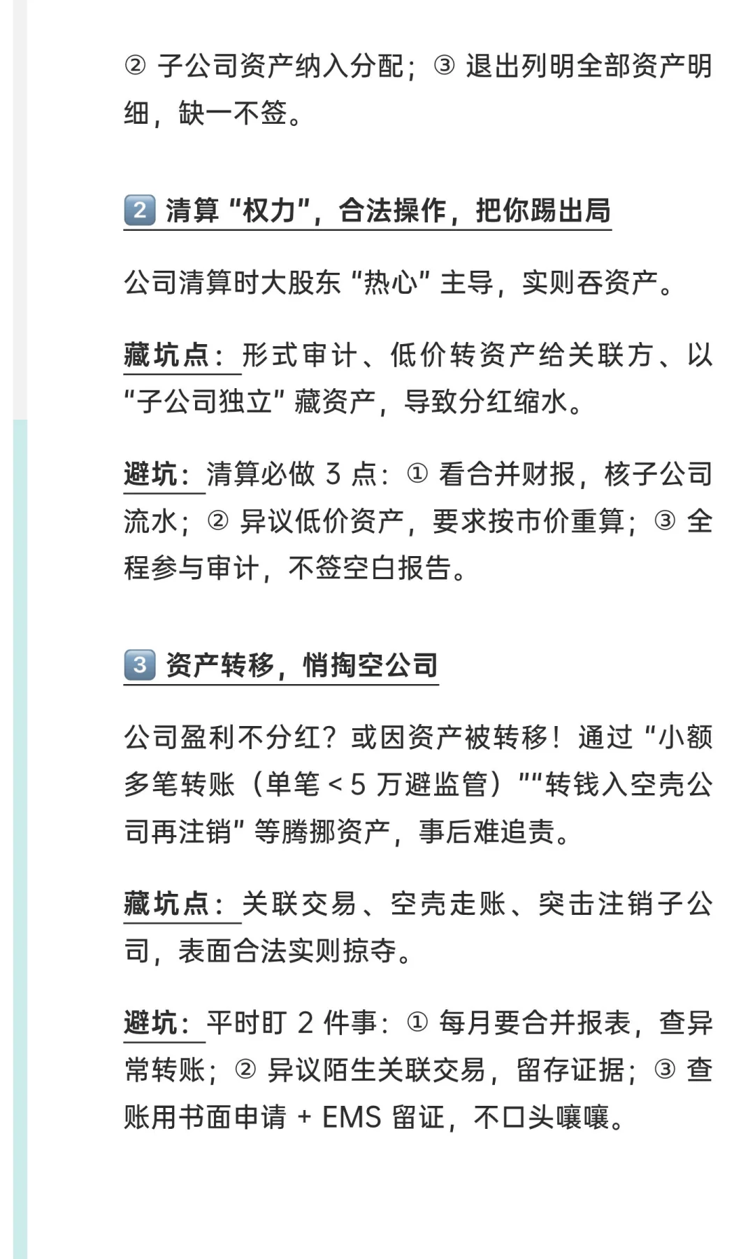 开公司投资需警惕股权纠纷,协议模糊、清算权力滥用、资产转移等常见陷阱。提前加3条协议,清算时全程参与审计,盯紧财务,确保知情权,避免资产流失。