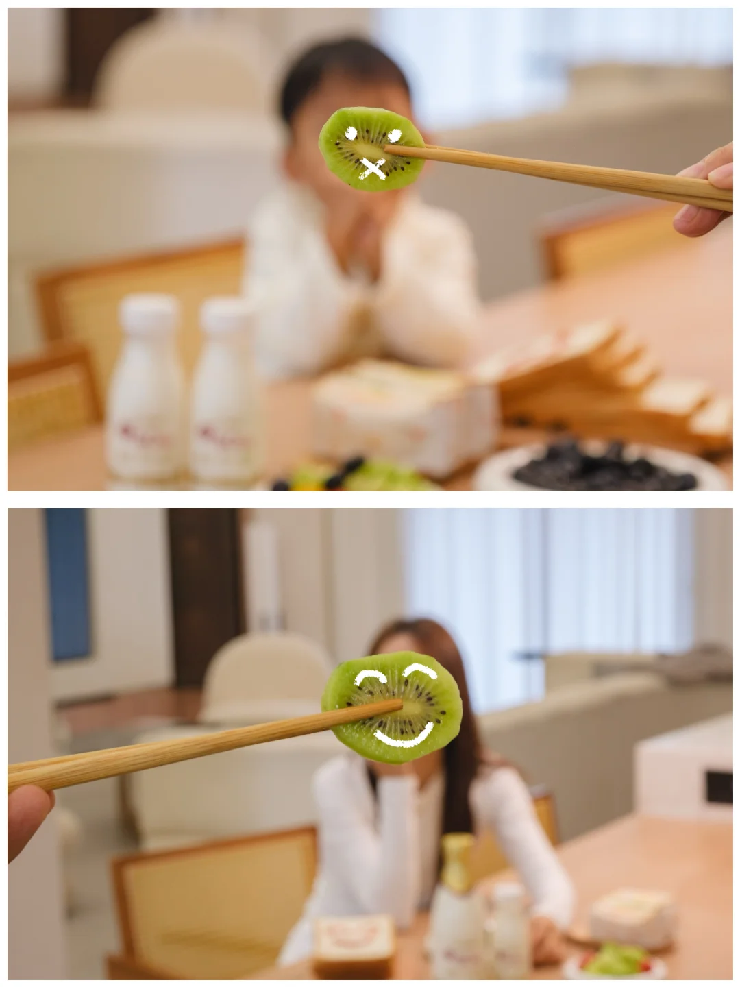 ⭐分别拍摄两人单独的照片,拼在一起呈现新的投喂方式