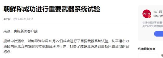 10月23日,朝鲜导弹总局通过朝中社官宣,10月22日已顺利完成一项重要武器系统试验,两枚高超音速飞行体精准命中目标,消息一出迅速引发国际社会关注。 这次试验由朝鲜劳动党中央书记朴正天、第一副部长金正植等人现场观摩,朝中社明确将其定义为“国防力量发展计划的关键一环”,核心目标是提升对潜在对手的战略遏制能力。 从韩国军方监测到的信息看,这两枚飞行体从平壤市力浦区发射,朝着东北方向飞行,最终准确击中了咸镜北道渔郎郡的目标点。飞行距离覆盖了朝鲜半岛东北部的关键区域, 更值得注意的是,飞行轨迹呈现出明显的不规则变化,还展现出低空机动能力。这种飞行特性意味着该武器系统能更灵活地规避拦截,这也是外界判断其技术升级的重要依据。 这次试验的时机选得相当有说法,就在10月14日,美国刚和韩国企业敲定合作,要联合生产舰载察打一体无人机,这被视作美韩防务合作升级的重要信号。 同时,日本新首相就职刚过一天,特朗普也计划月底访问韩国并出席APEC峰会。朝鲜在这个节点公开试验结果,显然是在传递明确态度:自身的国防建设不会被外部政治节奏干扰,更不会因美韩军事合作而放缓脚步。 朝中社的评论直接点破,试验是“自卫国防技术力量的更新升级”,这话明摆着是回应近期半岛周边的军事动态。 而国际社会的反应很快就分了层,美国白宫暂时没给出正式回应,但有消息说特朗普团队原本打算借亚洲行推进对朝接触,这下议程恐怕得重新调整。 日本首相高市早苗第一时间表态,称试射“完全不可接受”,还立刻召见了朝鲜驻日相关代表提出抗议。 韩国总统李在明则显得谨慎不少,一边呼吁通过对话解决问题,一边宣布把原定两周的韩美联合空中演习缩短到一周,明显在避免局势进一步紧张。中国外交部发言人则延续了一贯的立场,表示对此次发射活动“没有新的评论”,强调半岛问题需要政治解决的大方向。 其实这不是朝鲜第一次搞高超音速武器试验了,早在2021年,朝鲜就首次成功试射了这类武器,之后又通过多次试验打磨技术。 2025年1月的一次试验中,相关飞行体曾达到12倍音速,还完成了两次滑翔跳跃动作。这次试验则进一步验证了技术的成熟度,能看出朝鲜正把高超音速技术融入战术武器体系,形成对周边关键目标的直接威慑。这种能力提升,让美韩部署的反导系统面临更大压力,也让半岛的军事平衡多了层不确定性。 从战略层面看,这次武器试验和朝鲜的核政策是紧密挂钩的。就在这个月的阅兵式上,朝鲜还展示了能覆盖美国本土的洲际弹道导弹,而高超音速武器更像是战术层面的补充,一远一近、一核一常,构成了完整的威慑体系。 朝中社反复强调“战略遏制的可持续性”,说白了就是要通过不断升级武器技术,巩固自身的安全地位,不会因为外部制裁或外交压力就停下脚步。这种态度和美韩坚持的“无核化优先”原则直接对立,也让半岛局势短期内很难缓和。 说到底,这次试验再次说明,朝鲜已经走出了自己的国防发展路子:一步一个脚印地升级技术,抓住地缘政治的关键节点展示成果,再以武器实力为筹码争取国际社会的正视。 对美韩来说,接下来的APEC峰会前后,怎么在不激化矛盾的前提下应对这种技术升级,会是个不小的外交难题。而朝鲜接下来是继续试验还是释放对话信号,也将直接影响东北亚的安全格局走向。 来源:央广网 【朝鲜称成功进行重要武器系统试验】