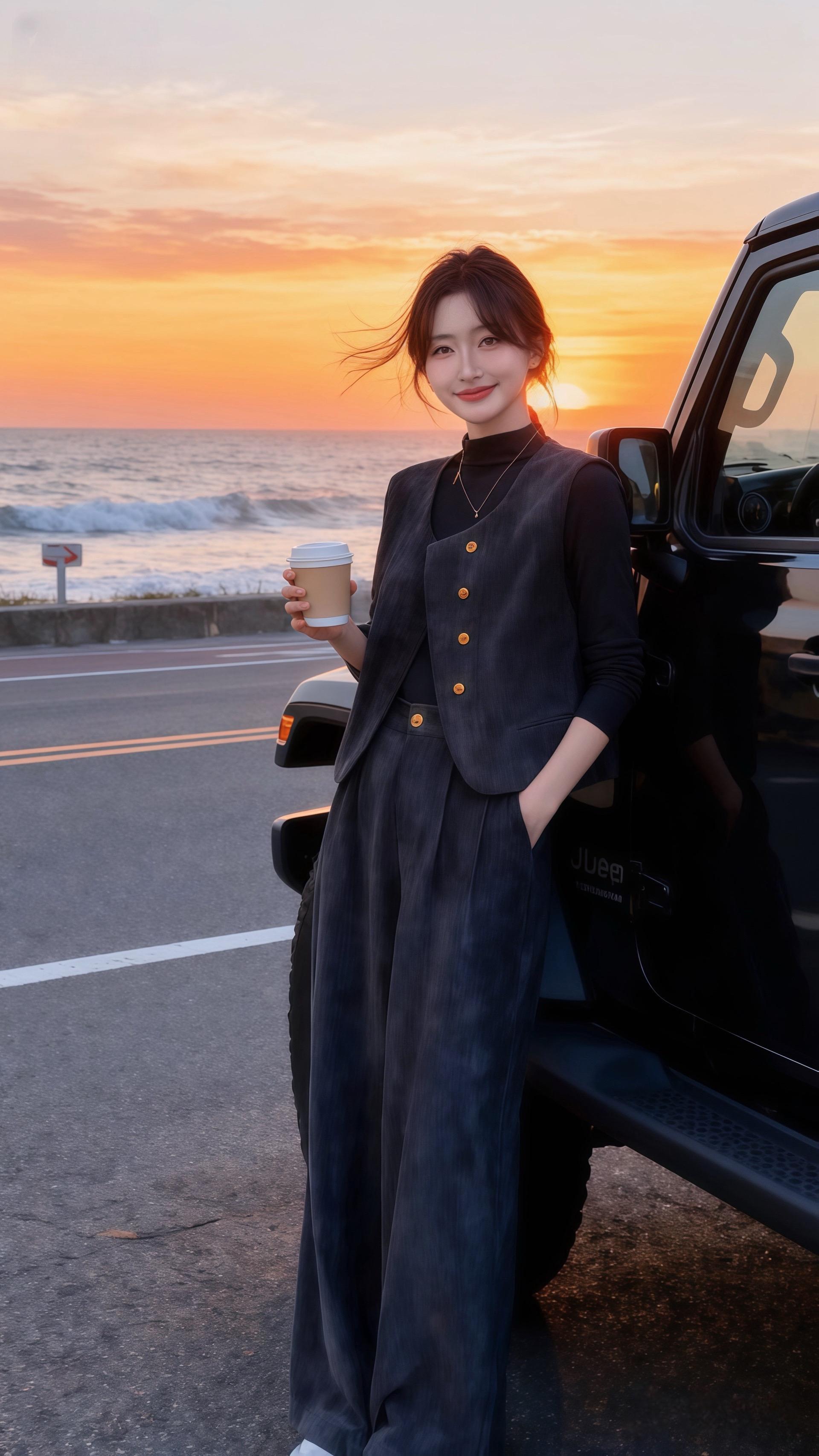 《秋日通勤到海边,她的“高级感穿搭”火出。都市街头的落叶里,苏晴在轻奢店橱窗前,一身深灰马甲套装干练利落,黑金手提包与简约白鞋的搭配,是职场女性的精致标配。 驱车奔向海边,落日熔金时,她靠在越野车旁,咖啡在握,马甲的金属扣在余晖里闪着高级光泽。与萨摩耶在画架前驻足,自画像将这份穿搭的质感定格。 坐在沿海长椅,海风扬起长发,手中的时尚杂志也因她的穿搭黯然失色。从写字楼到海岸线,这一套“通勤风秋日穿搭”,把职场干练与海滨浪漫揉成了故事,谁能拒绝这种把穿搭玩出高级感的风格呢~