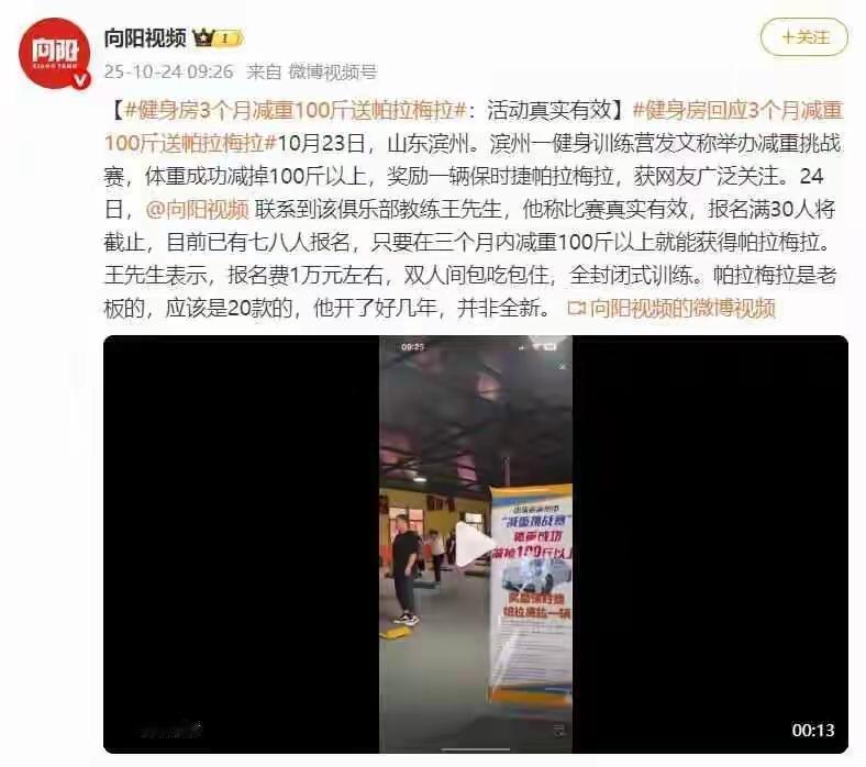 健身房3个月减重100斤送帕拉梅拉 回应:车是老板的,开了好几年,并非全新! 在这个看似“奇迹成真的”时代,很多人都渴望快速成功、瞬间变强、梦想成真。于是,某些“爆款”广告、社交媒体上的“神话”就这样被不断放大:健身三个月减重100斤,豪车免费送,上演一幕幕“逆天奇迹”。然而,真相究竟是什么?这背后,隐藏着我们所忽视的“人性”与“社会逻辑”。 有人会说:“哇,好励志!这不就是每个人都梦寐以求的奇迹吗?”但细心一看,故事的“魔法”其实有点“魔幻”。那辆帕拉梅拉,实际上是老板的“旧车”,开了几年,不是传说中的全新豪车。这个细节,或许乍一看无伤大雅,但它反映的,却是一个更深层次的社会现象:我们对“成功”的渴望,渐渐被包装、被滤镜、美化,变得“看得见的光鲜”,而忽略了“真实的底色”。 这让我想到:为什么我们总喜欢去相信“努力就一定有回报”?其实,背后隐藏着一种“心理期待”:只要我付出足够多的努力,就能得到“梦幻中的奖励”。但现实告诉我们,很多“奖励”其实是“包装过的幻觉”。那些所谓的“奇迹”故事,背后或许都藏着某种“策略”——不管是广告的夸张,还是明星的“包装”,都让我们迷失在“虚幻的光环”中。 更令人深思的是,社会对于“成功”的定义,似乎变得越来越单一:一辆豪车,一份事业,一个“完美”的身材。可真正值得我们反思的,是:我们追求的究竟是“外在的光鲜”,还是内心的真实满足?这个问题,远比一辆“旧车”更值得我们深思。 所以,下次当你看到那些“3个月减重100斤,送豪车”的广告,不妨多留个心眼。成功,从来不是轻轻松松的“奇迹”,而是不断的自我反思和真实努力。而那些“豪车”背后的故事,也许只是社会“包装”下的幻象。真正的价值,是我们能否在浮华中找到自己,坚定走好每一步的勇气。 你我都在追梦,但别忘了,最值得骄傲的,永远是那个真实、坚持不懈的自己。减肥跑车