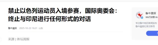 国际奥委会可以解散了!近日该组织宣称终止与印尼国家奥委会就举办国际赛事的所有对话,并建议所有其他国际赛事不在印尼举办。   为啥这么冲动?因为印尼政府拒绝向参加雅加达世界体操锦标赛的以色列代表团发放签证。该组织谴责其违反了“国际体育无歧视原则”。   这事要从雅加达体操世锦赛说,2025年10月,第53届世界体操锦标赛在印尼雅加达举办,来自79个国家和地区的500多名运动员参赛。可赛前印尼司法部长突然宣布,拒绝为6名以色列选手发放签证。   这一决定让以色列体操名将多尔戈皮亚特等选手直接失去参赛资格,连国际奥委会都没想到印尼会这么刚。   印尼为啥这么做?原来,印尼长期支持巴勒斯坦,至今未与以色列建立外交关系。印尼政府明确表态,只要以色列不承认巴勒斯坦主权,就不会与以色列有任何往来。   这次拒签就是对以色列在加沙地带军事行动的抗议,印尼青年与体育部长托希尔说,这是“维护世界秩序”的必要举措,就算得罪国际奥委会也在所不惜。   国际奥委会这下急眼了,2025年10月22日,国际奥委会召开远程会议,宣布终止与印尼奥委会关于未来所有奥运赛事的对话,还建议全球体育组织暂停在印尼办赛。   这意味着印尼此前筹备的2036年奥运会申办计划基本泡汤,连已经举办的篮球世界杯、亚洲杯等赛事都可能受影响。国际奥委会还修改奥运资格原则,要求所有奥运资格赛主办国必须保证运动员自由入境。   但国际奥委会的做法却被质疑“双标”,2022年俄乌冲突爆发后,国际奥委会禁止俄罗斯以国家名义参加巴黎奥运会,只允许部分运动员以中立身份参赛。   可这次以色列在加沙的军事行动仍在持续,国际奥委会却没对以色列采取任何制裁,甚至在巴黎奥运会上,以色列运动员还能挥舞国旗参赛。   更讽刺的是就在制裁印尼的同时,国际体育仲裁法庭刚刚判定,2022年欧洲乒联禁止俄罗斯和白俄罗斯选手参赛的行为构成歧视。   印尼国内对拒签决定却很支持,印尼总统明确指示,外交立场不能因体育赛事妥协。印尼奥委会和体操协会虽面临国际压力,但仍表示会配合政府决定。   就连国际体操联合会和亚洲体操联合会都称,签证发放是主权国家内政,自己无权干涉。这让国际奥委会的制裁显得有些尴尬。   这场风波背后,是国际体育与政治的深层博弈。国际奥委会一直强调“体育无国界”,但实际操作中却总被政治左右。   印尼用实际行动证明,主权国家不会为了办赛放弃原则。而国际奥委会的“一刀切”制裁,不仅伤害了运动员权益,也暴露了其规则的随意性。   如今印尼的态度依然强硬,国际奥委会的权威却在这场风波中大打折扣。或许,国际奥委会真该好好反思一下,自己到底是体育组织,还是政治工具了。   来源:鲁中晨报 【禁止以色列运动员入境参赛,国际奥委会:终止与印尼进行任何形式的对话】