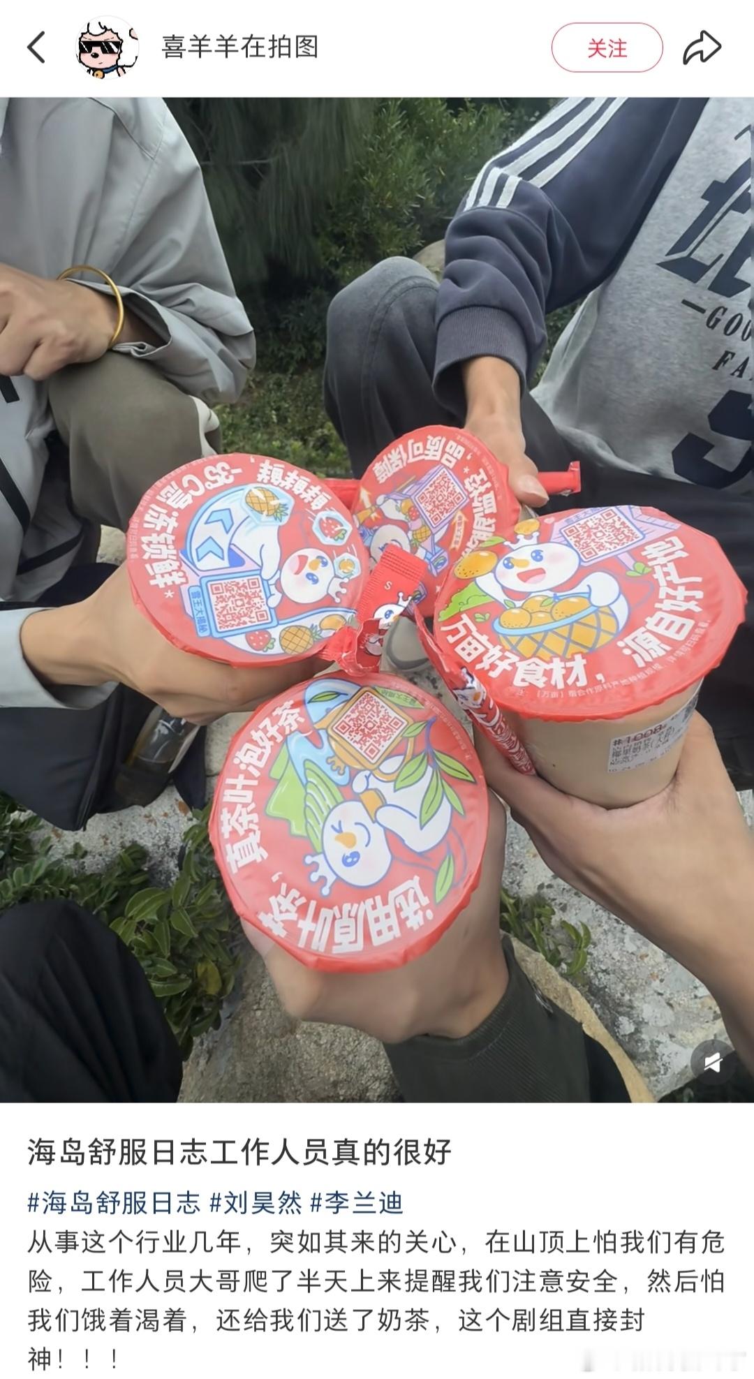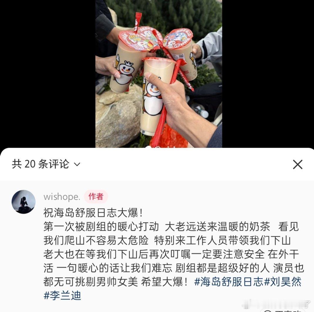 《海岛舒服日志》剧组咋还给代拍送奶茶呢[笑cry]不过代拍拍到美迪也算是功德一件了[么么哒]给暖心剧组点赞[鼓掌]祝拍摄顺利李兰迪海岛舒服日志