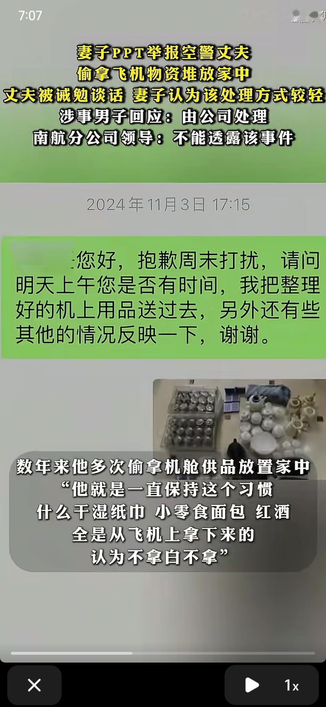 果然,不爱你的人,在ta眼里,你做什么都是错的 南航的男空警,此时此刻,肯定是伤透了心,妻子为了跟他离婚,不惜写65页的PPT举报他,说他偷拿飞机物资放在家中,本以为是很贵重的东西,没想到却是——小面包、一次性拖鞋、湿纸巾这些小物品,他拿这些东西回家,也只是为了给妻子用,却不料,反手就将他推上“刀口” 男空警的这种行为,不就是顾家的体现,这种东西扔了也是浪费,与其浪费,不如拿来用了 妻子的这种做法,无疑是让男空警伤心的,自己心里装着妻子,但妻子心里没有自己。 大家怎么看?