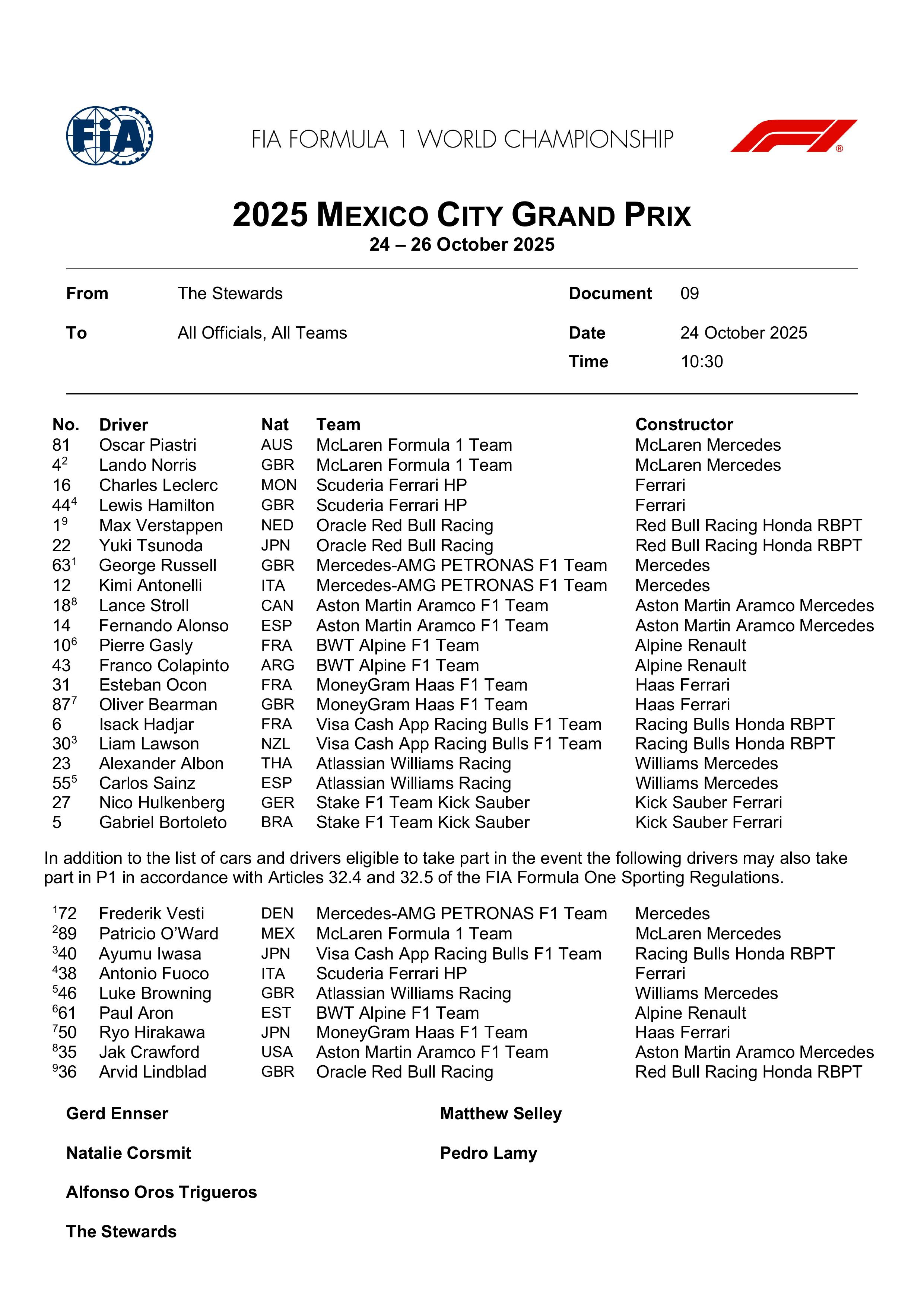 墨西哥城大奖赛二练成绩表如图F12025F1墨西哥城大奖赛