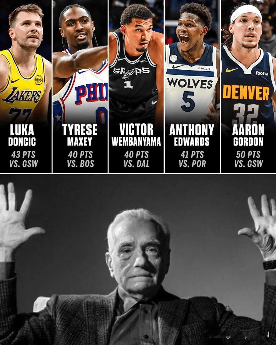 ESPN 发文道: “简直是电影剧情!常规赛开赛至今,已有5名球员砍下至少40分。这创造了NBA历史上单个赛季揭幕战最多40分表现的纪录。“ 这5位球员分别是 卢卡-东契奇:43分 VS. 勇士 泰雷斯-马克西:40分 VS. 凯尔特人 维克托-文班亚马:40分 VS. 独行侠 安东尼-爱德华兹:41分 VS. 开拓者 阿龙-戈登:50分 VS. 勇士