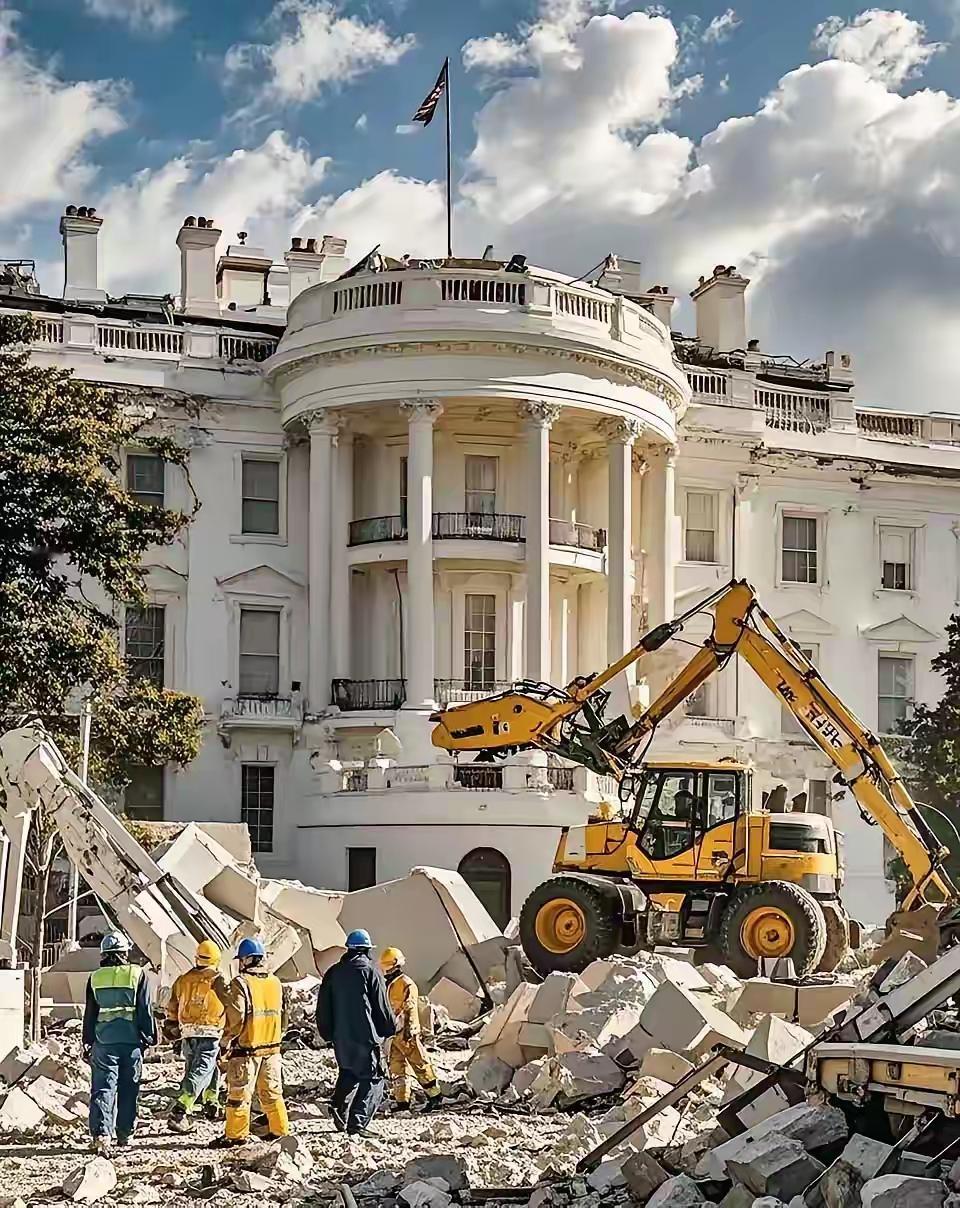 见证美国软实力的机会来了…… 特朗普去了一趟英国,去温莎城堡吃了顿饭,被超大豪华的餐厅迷住了怎么办? 自己建,没地方怎么办?拆了重建,于是白宫成了拆房工地。 拆起来容易,建起来难!见证美国的软实力的机会来了……看看建好需要多长时间? 看效果图,拐角处一座百米以上的摩天大楼,豪华餐厅与之相连,这规模特朗普任内都够呛…… 军队都没钱发工资了,还有钱建大楼,这一点像不像甲午战争前的大清?川普特朗普 特特朗普 对此大家怎么看?个人观点,不喜请喷!