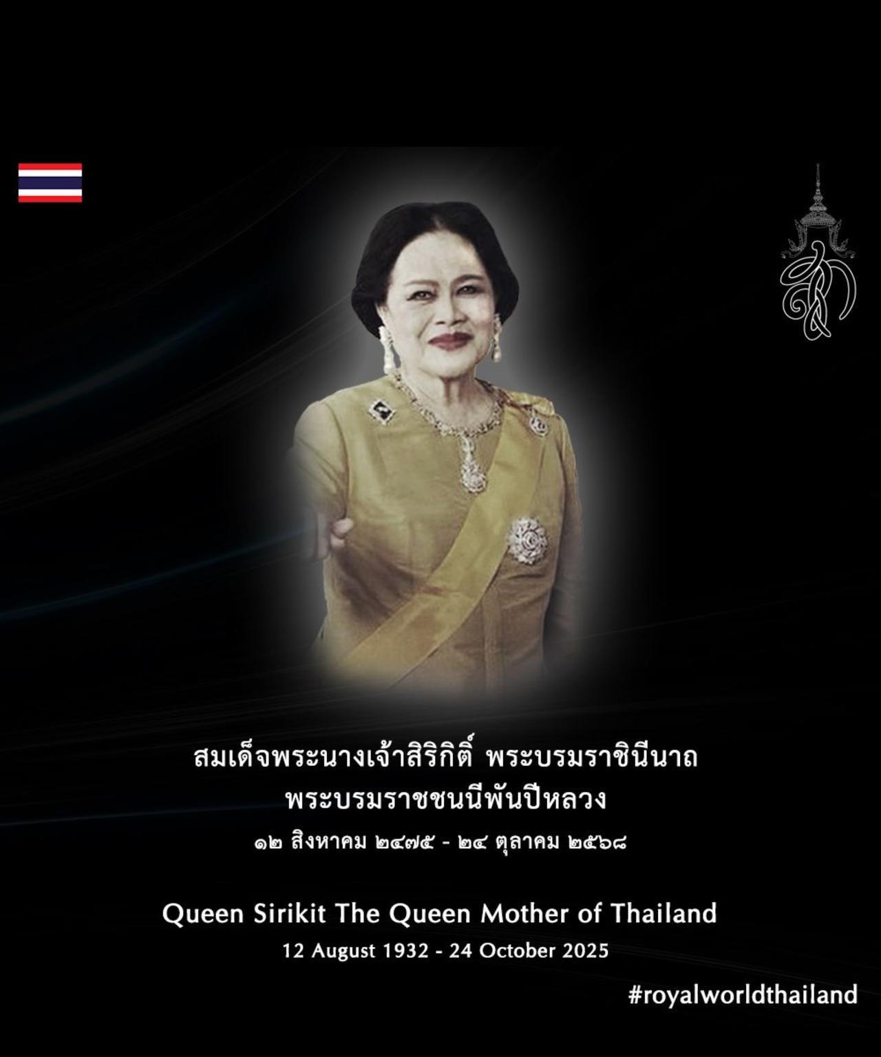 93岁诗丽吉去世,泰国王室举行国葬 10月25日凌晨1:58,泰国王室内务局沉痛发布公告:诗丽吉太后逝世。举国悲泣,国王陛下深感哀恸,即刻下令王室宫廷事务局,依王室传统,以最高荣誉为太后举办葬礼。太后遗体将安葬于大皇宫杜斯特玛哈普拉萨王座大厅。同时,国王陛下仁慈准许王室成员与朝臣,自太后去世起哀悼一年。