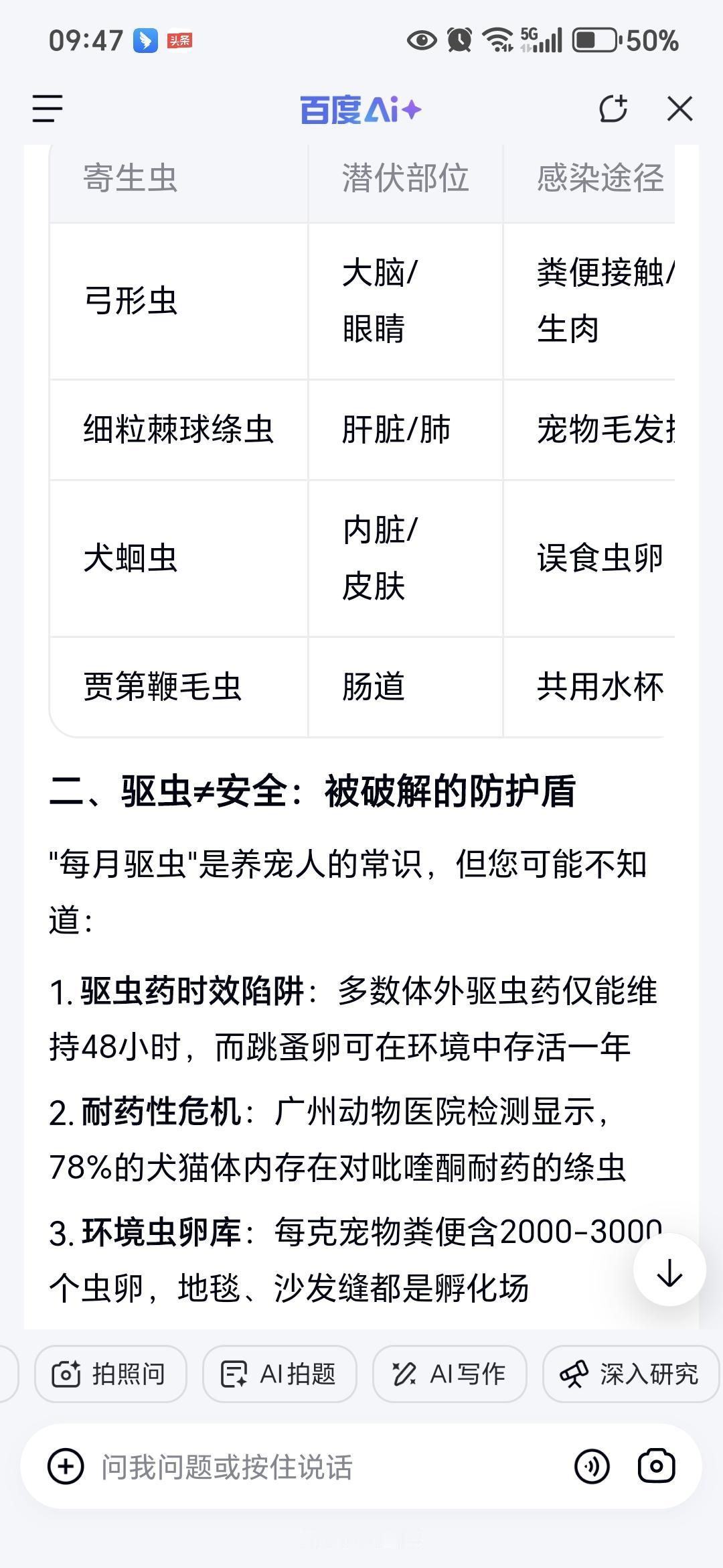 太恐怖了!太震惊了!寄生虫钻进肚子和大脑。现在有很多家庭都养宠物,而且和宠物在一张床上睡觉,喝同一杯水,一起吃饭,把宠物当自己的孩子'。虽然每天都给宠物洗澡,也做了驱虫。每月驱虫"是养宠人的常识,但您可能不知道:驱虫药时效陷阱:多数体外驱虫药仅能维持48小时,而跳蚤卵可在环境中存活一年。 耐药性危机:广州动物医院检测显示,78%的犬猫体内存在对吡喹酮耐药的绦虫 环境虫卵库:每克宠物粪便含2000-3000个虫卵,地毯、沙发缝都是孵化场。 宠物能给我们提供情绪价值,但不要拿自己和孩子家人的生命开玩笑。 养宠物要注意安全和防范:空间隔离:禁止宠物进入卧室、厨房,设置专用食具 卫生革命:每周用60℃以上热水清洗宠物用品,每月用次氯酸消毒环境 检测先行:每季度带宠物做粪便PCR检测,比传统镜检准确率高40倍 免疫屏障:孕妇、儿童、老人应避免接触猫砂盆,接触后立即用硫磺皂洗手