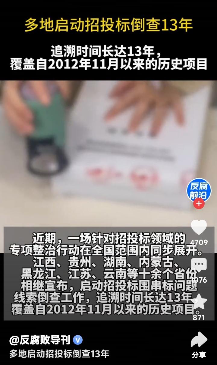 江西贵州湖南等十余省同步亮剑!招投标领域倒查13年黑幕,万亿项目资金流向即将真相