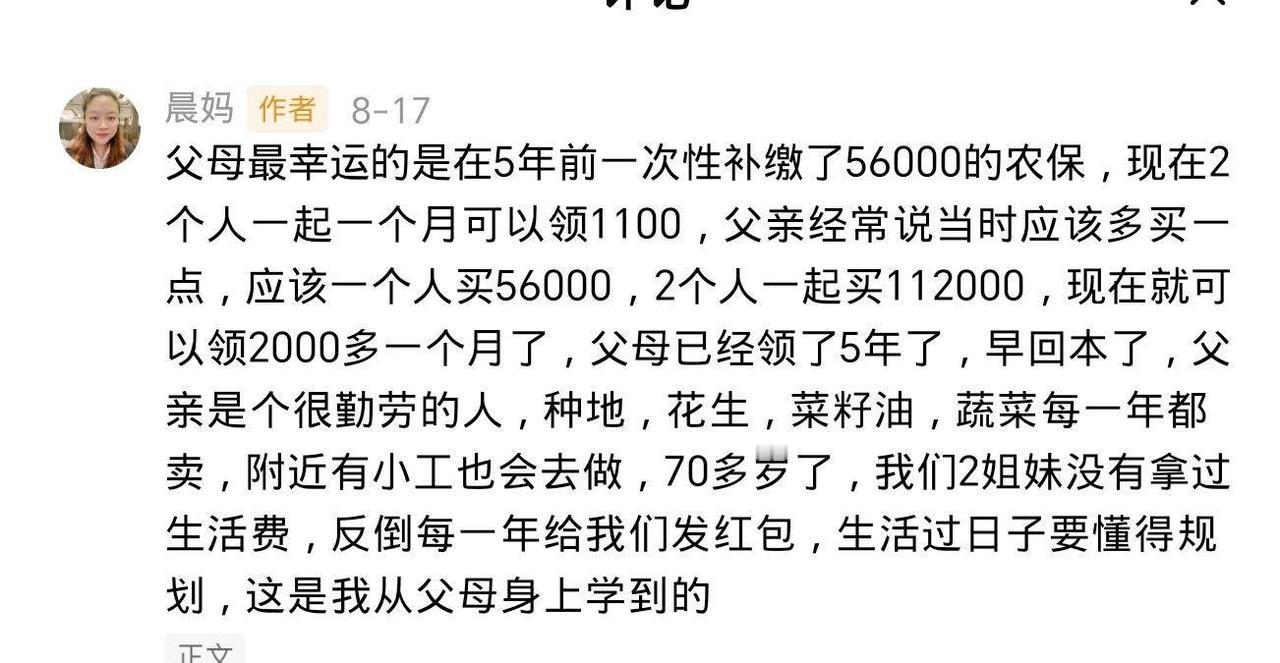 农村老人只有120块(2510)的养老金的真相是什么?常看你乎,我就没有明白,为什么没有人说清楚? ------------------------------------ 那几百块是养老金,无条件发放的福利,跟退休金不是一码事,退休金才是社保范畴。 其实这事说的很清楚了,只不过很多人讲理实在讲不过别人就说别人是既得利益者,跟牛二一样满地打滚。 京东一个农民工大哥退休金四千多,因为缴了二十多年的社保。浙江部分农村农民退休金四千多,因为村里给买了养老年金商业保险(自己承担一半)。同样,能拿这么多退休金的外国农民一样也得付出这样的“代价”,但是土殖不会告诉你,还会说这是无条件发的,也不会告诉很多国家农民很少,成为农民的门槛不低,甚至农民就是资本家,连环卫都是公务员系统,一堆人去报考。 所以这种事情别较真,本来也不是和你讲理的,道理只能和正常人交流。只要假装站在老百姓、农民、人民这些概念基础上,再怎么撒泼打滚胡搅蛮缠歇斯底里胡说八道泼妇骂街,再怎么扯淡,那都是正义和道德。反正就是闭口不谈或者复读陈词滥调,我从不看评论区,但也知道是这样各种陈词滥调的强词夺理,跟这些人讲理瞎耽误功夫。 凭什么那么多下岗工人自己辛辛苦苦缴养老保险几十年,退休后才领2000元左右。不过在这些人看来下岗工人也是既得利益者。 农业税属于地租,跟养老保险有毛的关系,再说早就取消了,不但取消,现在种地还有补助呢,就是说农民作为经营者不但不收税而且还给钱。几千年给地主当佃户当杨白劳不敢说,现在白种地还有补助居然想土地私有化? 60岁的农民也有土地、自留地、宅基地,如果这些换算成钱该值多少钱? 你要真是五保户那国家基本上把你生活包圆了。 不少地方农民也有4000多退休金,那是村集体或者自己买的商业保险加上农村基本社保,外国和台湾农民的退休金也是这么来的,根本不存在一辈子一分钱不缴完了老了还有很多退休金,可是公知不会告诉你这些,只会忽悠你反正老了就有退休金。 视同缴费那是国家没有建立完善的养老金制度之前的人权宜之计,按照原来的政策补发退休金发工资有毛区别?而且时间很短,你要纠结这一点是不是可以纠结为什么种地还有补助?不交钱还有几百块“养老金”?农村合作医疗国家补助一大半自己只缴380? 这些人最后一招是说假如农民这么好咋没人干呢?无知,如果现在给农村户籍给耕地给宅基地,城镇户籍排队的人早就爆满了。
