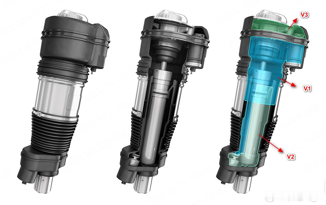 “双腔/多腔空气弹簧” 是灵活可变、能对抗物理天性的执行机构,解决了单一空气弹簧无法兼顾舒适与运动的矛盾。