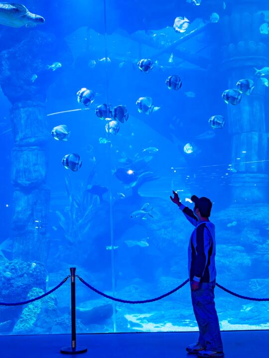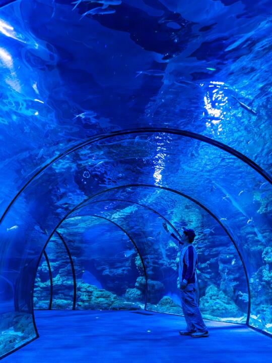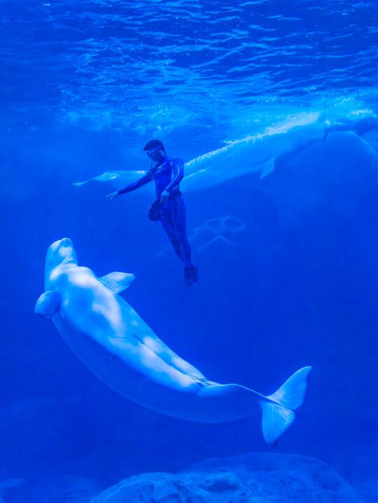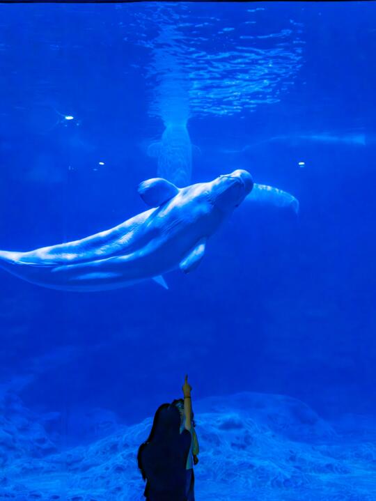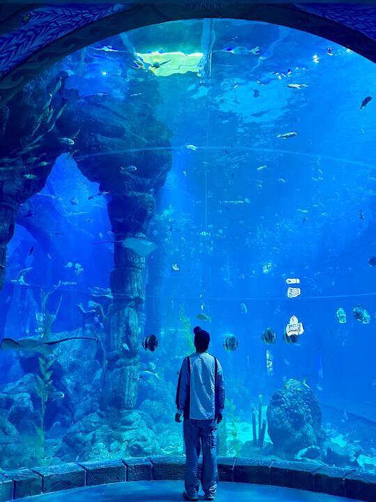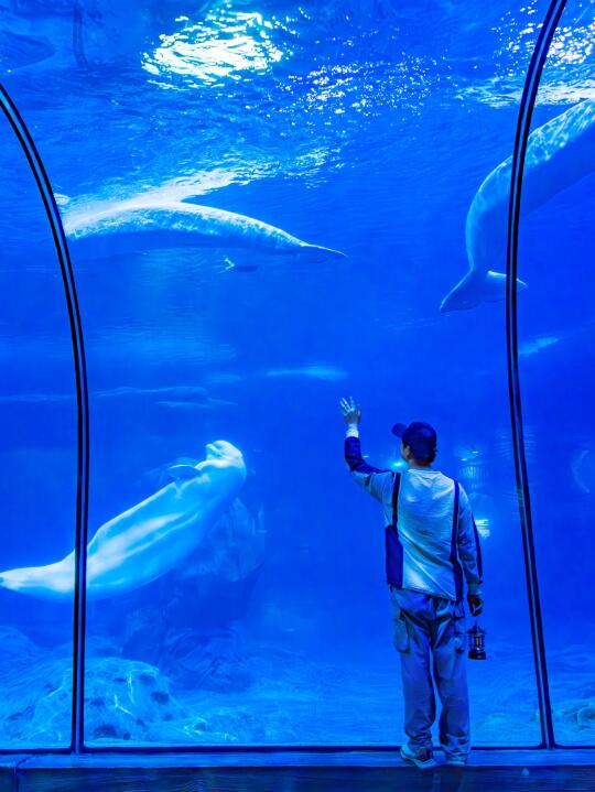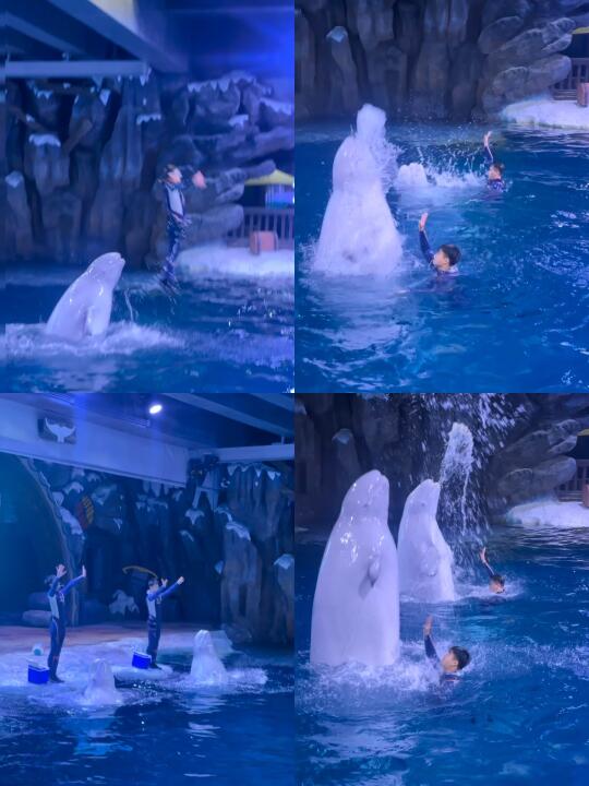 一共分为三层,一进去就被扑面而来超大观景点给震撼到了,在这里打卡拍照片超级出片,而且这里每天还有超级多的现场表演:人鱼传说、人鲸之恋、白鲸传奇等等,根本看不来,宝妈们到了这里就可以解放双手了。