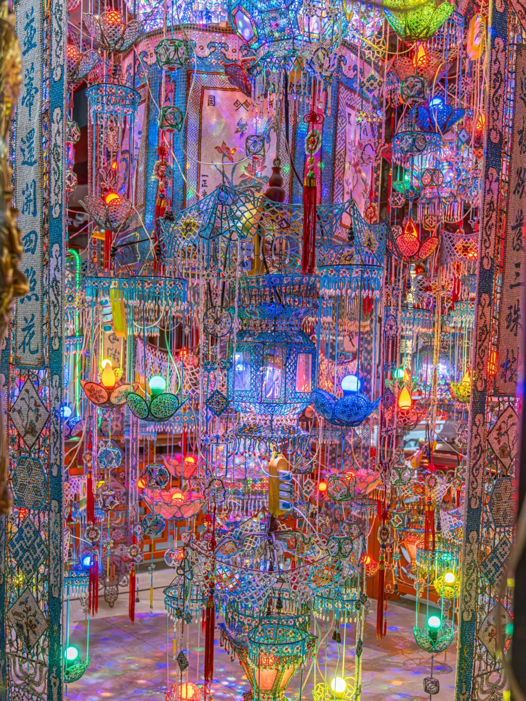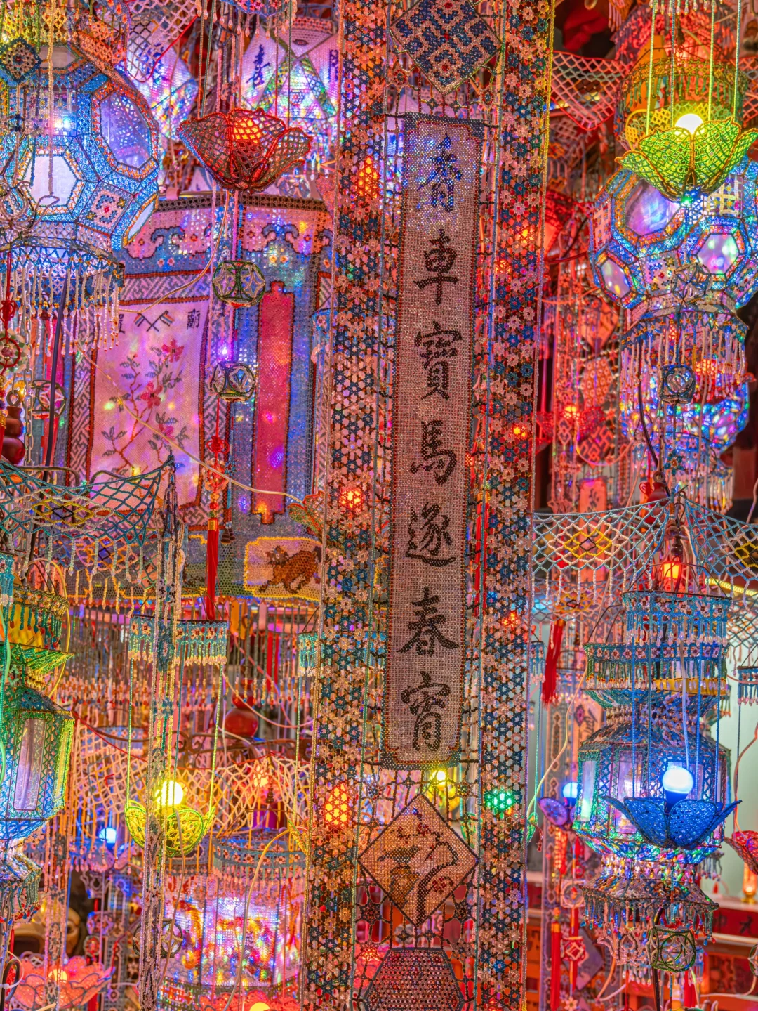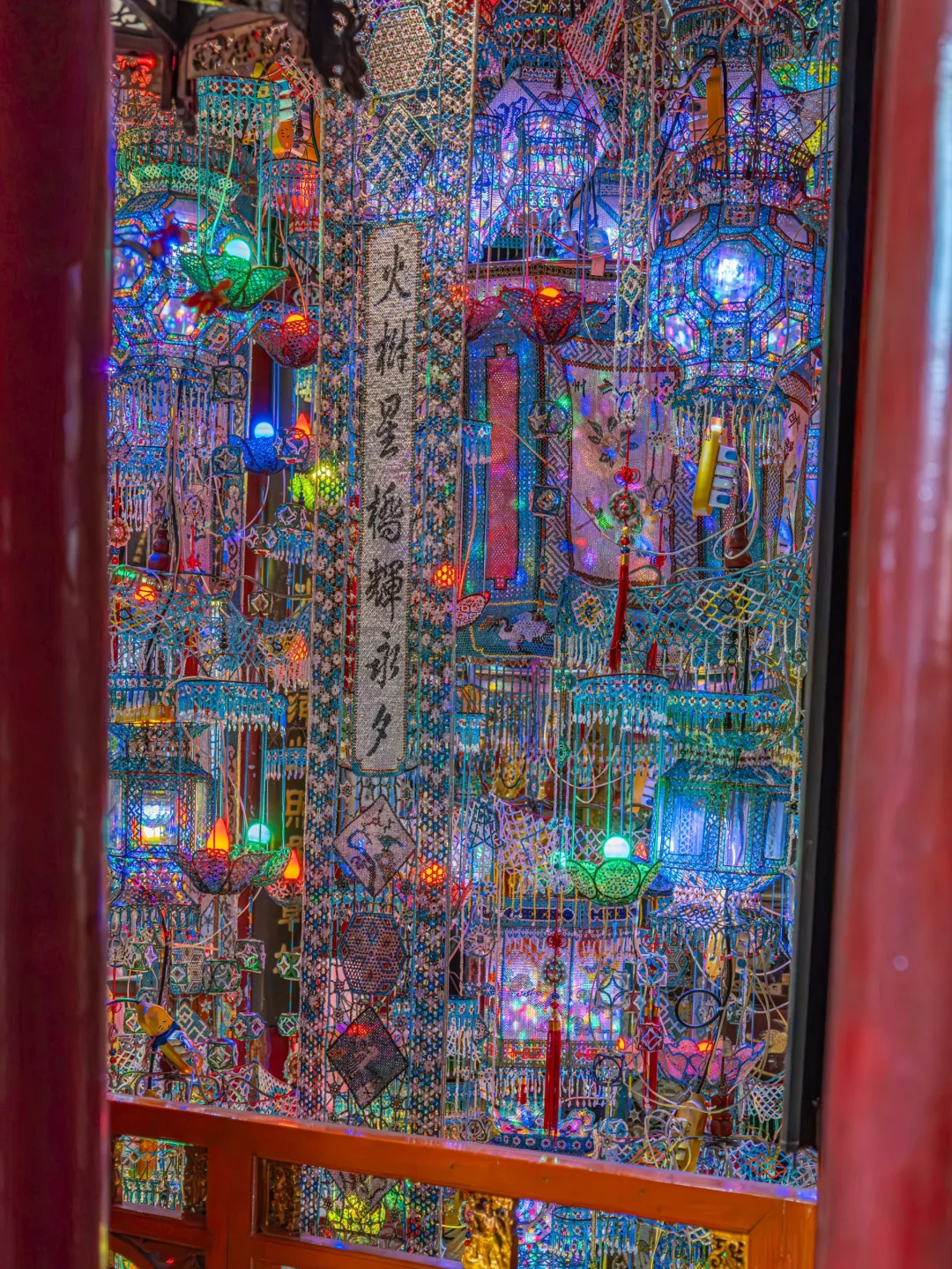 一直都知道温州有个百年的珠簖灯 但是当我站在他面前的时候真的被震惊了 非常普通的五显庙里面居然藏着这百年珠簖灯 还有古朴的戏台 无时无刻在诉说这历史的悠久 . 📍地址:温州蒲州街512号(五显庙) . 🌟科普: 珠灯,又称珠簖,是民间手工艺人精工制作的艺术珍品。庙里现存的珠簖据传制作于清康熙年间,距今已有三百余年的历史,民国甲子年(1924)曾重修。 大大小小计四百多件,全部由手工制作的五彩玑珠(据传来自南洋)串制而成。围绕着一个径2米多的圆珠簖,密如织布,上串绣六幅四時之花。 后因年长日久,遭自然和人为损坏严重,线段珠散濒临毁灭之危,后得各届人士合力支持慷慨捐赠修缮。古老的民间艺术瑰宝重放光彩,再现温州,为民俗文化锦上添花。 .