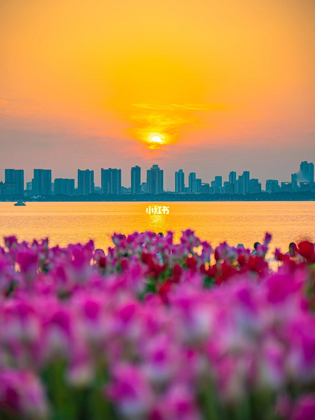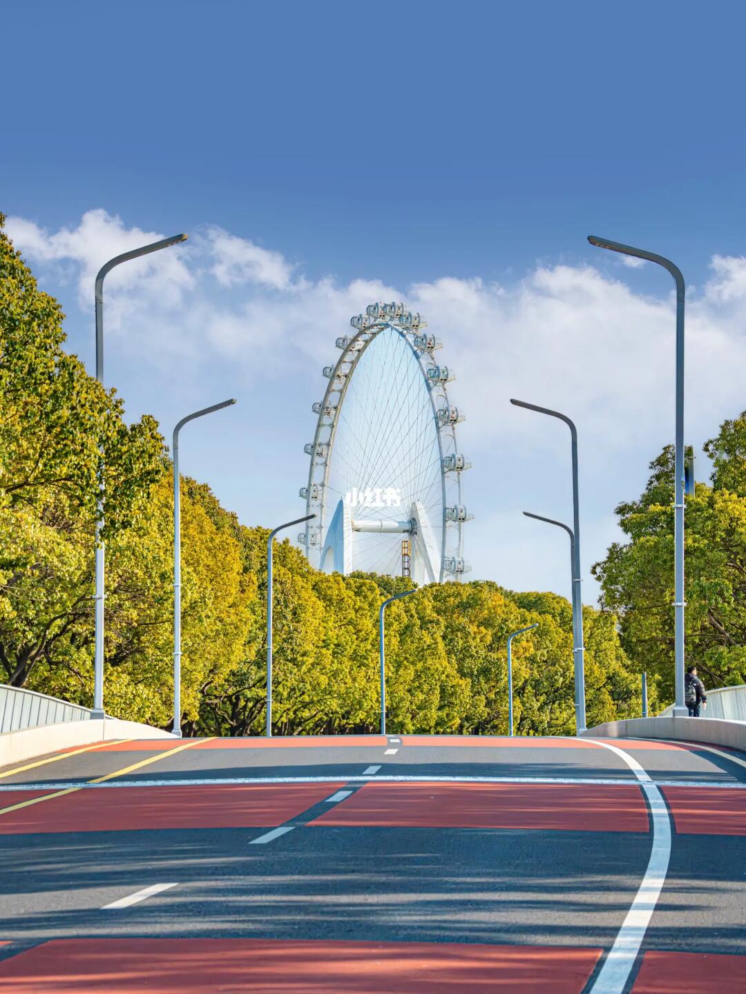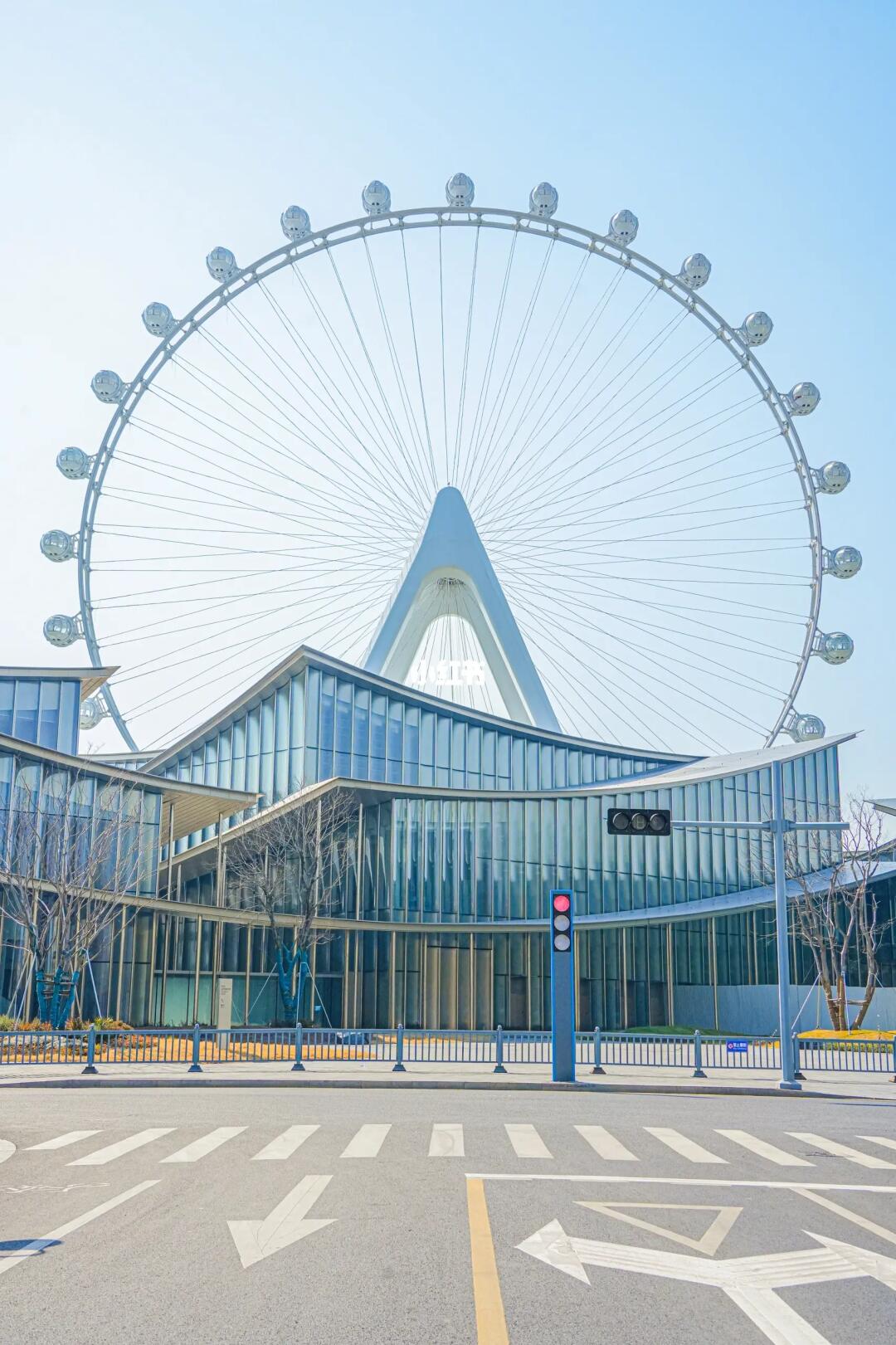 这里有苏州之眼摩天轮、飞翔雕塑都在这里,在雕塑底下还有成片的郁金香,能和对面的东方之门同框
