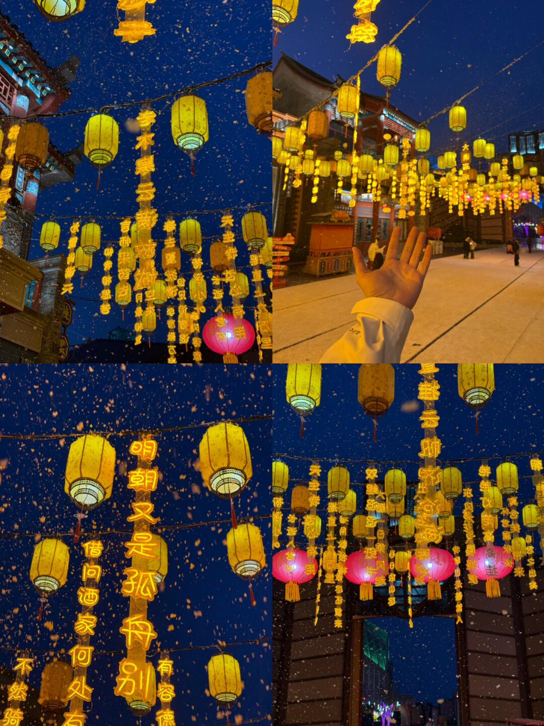 飘雪小镇:当雪落下的那一刻,站在灯光下,也体验乐一把下雪的浪漫。