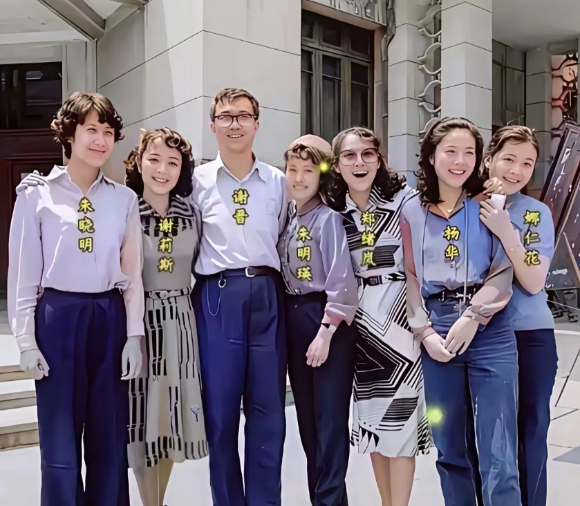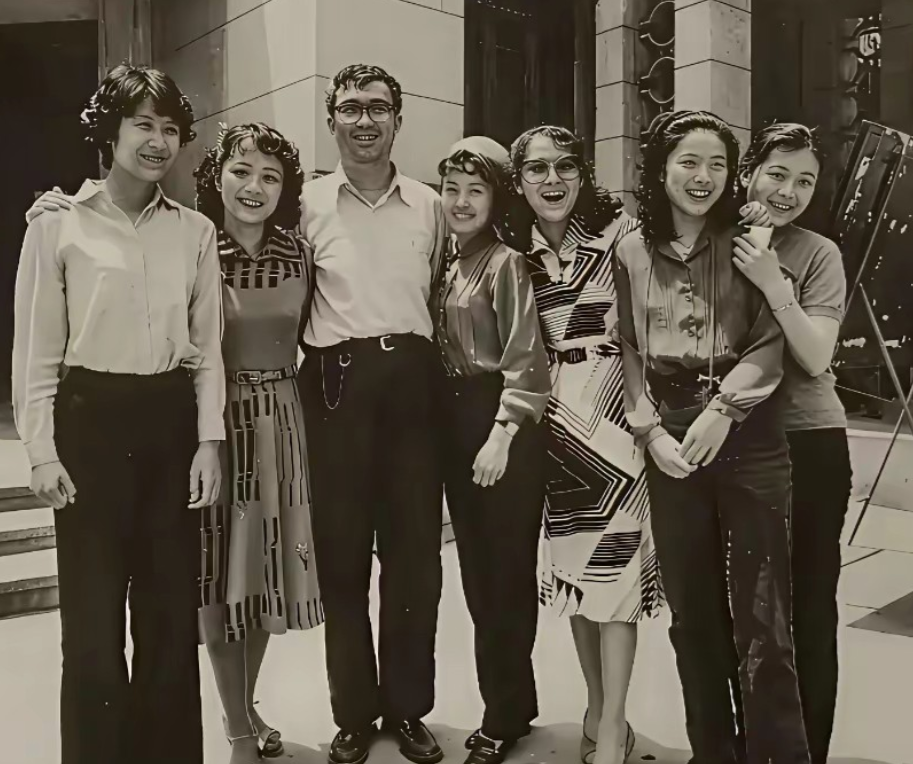 唯一一个不认识的就是这个杨华,都不知道她是做什么的? 没想到苏小明(名字三个字错了两个,连姓都写错了,这是谁干的?)个子这么高。 更想不到的是,谢莉斯大家都知道个子不高,朱明瑛居然比谢莉斯还要矮。 郑绪岚倒是比印象中洋气和开朗了许多。 只有最右的娜仁花一个演员。 谢晋导演身边围着的不应该是一帮女明星嘛,张瑜陈冲刘晓庆李秀明之类。这样几个当红女歌星和大导演确实很少见啊,好像她们也都没唱过谢导电影里的歌吧?!