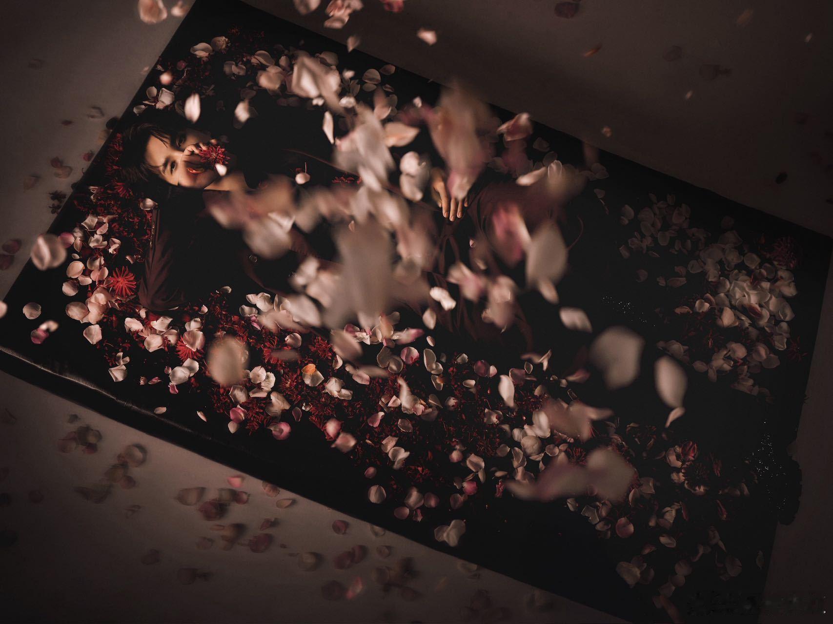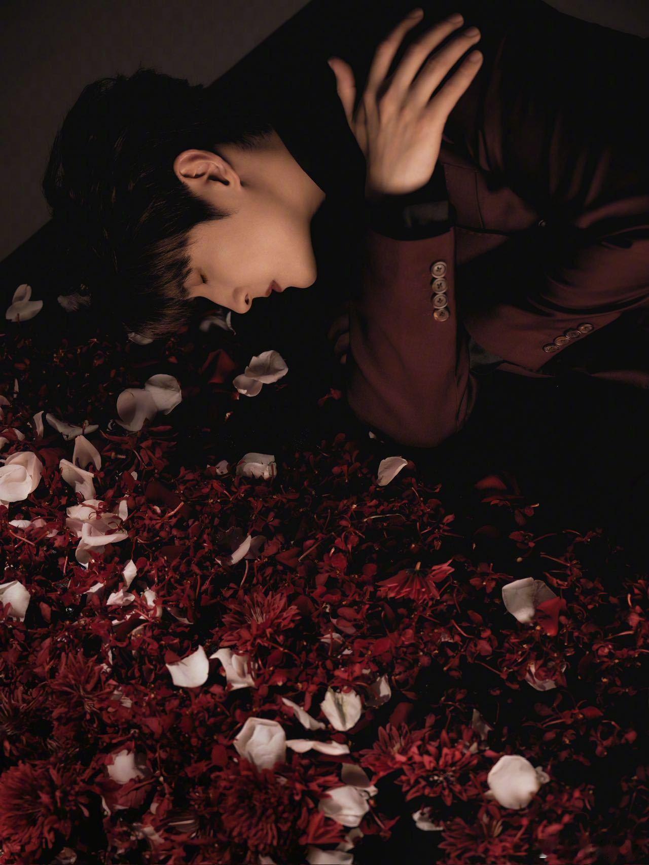 张远在花路上躺平了 张远置身花瓣海洋,暗红西装搭配飘落红瓣,慵懒随性间不失精致。单手扬花氛围感拉满,仿佛在花路之上享受此刻惬意