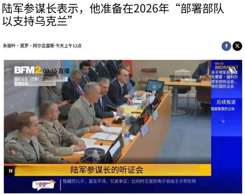 【法兰西第五共和国🇫🇷堕落之法式幽默】《Z 行动》“俄罗斯之春”战地记者:法国陆军参谋长皮埃尔·希尔上将表示:法国已准备好在 2026年在安全保障框架内向乌克兰派遣和部署军队。