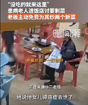 “这是真的饿了。”云南昭通,一位老人自带一盒冷饭来到饭店,请求给点剩菜。店主一家本以为是乞讨者或骗子,愣了好一会。结果老人突然拿出病历:“我真的没钱了,一天都没吃饭了。”男子看了心里很不是滋味,让老人坐在旁边等一会他去拿菜,可当菜端上来时,老人差点红了眼眶。 “大爷,饭是冷的,你真要就着吃吗?”老人拎着一个旧饭盒,脚步有些发虚,衣服干净但旧得发白。听到这话,他抬起头,露出一个有点尴尬的笑:“没事,我就想要点剩菜就行。” 老板原本以为他是乞讨的,甚至还怀疑是不是又遇到骗子。可老人没有争辩,只是从怀里掏出一份皱巴巴的病历本,手在抖,声音却异常平静,说自己这些天在医院忙前忙后,一口饭都没吃上,实在是撑不住了。 这一刻,老板的喉咙像被什么堵住了。 老人表示女儿前些年确诊癌症,哪怕倾尽所有为女儿治病,可终究还是没能救回来。如今老人独自来医院看病,身上的钱基本都搭了进去,如果不是饿极了,老人也不会来麻烦这位老板。 老板沉默地看着他,心里堵得慌,转身进厨房,烧火、放油、下锅,手都在微微发抖。 担心在店里吃会打扰老板做生意,老人几次三番表示自己打包去其他地方吃,老板看着老人小心翼翼的样子,鼻子又是一酸,他告诉老人,以后看病如果没吃的,就来这里,免费管老人吃饭。 当这件事被发到网上,很快引发关注,评论里,几乎全是泪目。有人说:“这一碗饭,救回的不仅仅是大爷的人,还有大爷的尊严。” 生活的残酷,在这样的细节里展现得淋漓尽致。有人随手浪费一桌菜,却有人饿着肚子,拎着冷饭走进饭馆,只希望讨一点剩的。贫穷和尊严,在那一瞬间撞在一起,发出沉闷的声响。 但人间也因为那一碗热饭,多了几分温度。老板没有多问,也没有刻意表现,只是做了一顿家常菜。这份朴实的善意,比任何豪言壮语都更打动人心。 有些人以为善良要轰轰烈烈,其实不然,最真挚的善意,往往是平凡的、自然的,一碗饭、一句话,就能让一个人重新感受到世界的温柔。 生活中,太多这样的老人被忽略,他们不求施舍,只想吃口热饭,活得像个“人”。可现实常常让人抬不起头,连求助都变成一种羞耻。 幸好,还有人记得那句朴素的道理:人要有善意,饭要有温度。 信息来源: 澎湃新闻2025-09-24报道丨“没吃的就来这里”,患病老人进饭店讨要剩菜,老板免费为其现炒 文丨小王 编辑丨史叔
