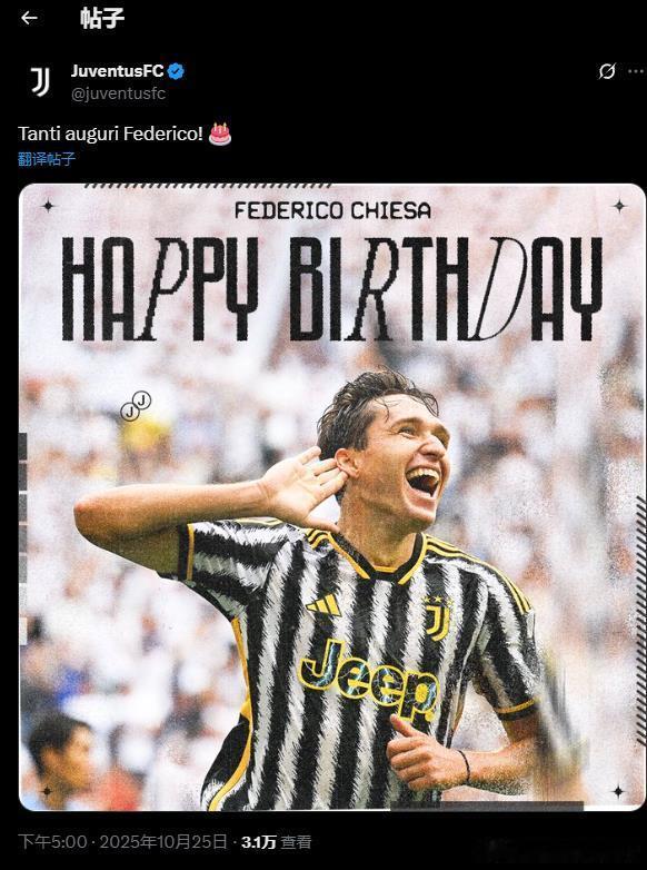 尤文对基耶萨的生日祝福