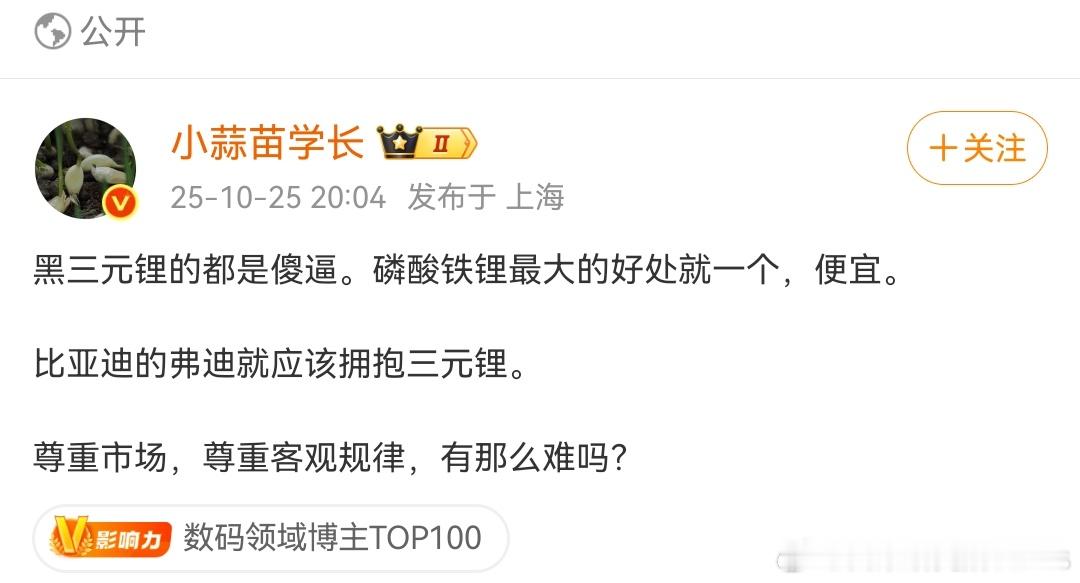 真尊重市场规律,你应该闭嘴吹铁锂!人家乘联会市占率统计的清清楚楚,什么是市场规律?有出货量不看,靠你一张破嘴?