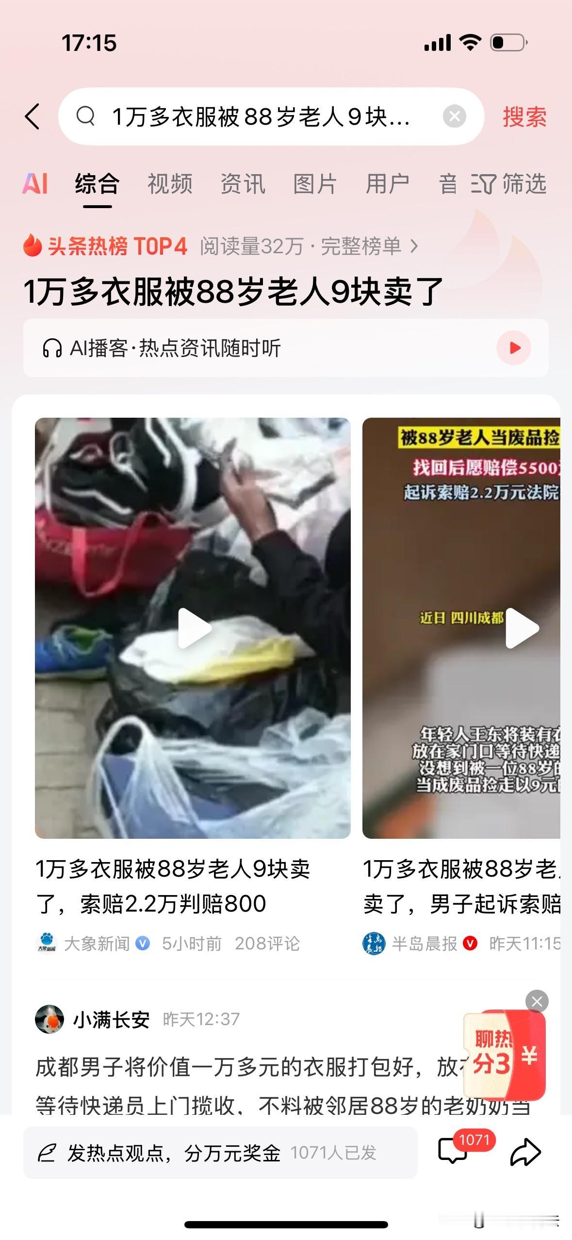 四川成都,男子将价值1万元衣物放在家门口等快递员上门取件,却被88岁的邻居阿婆捡走,并以9元价格卖掉。男子报警后,阿婆和儿媳赶紧去回收站找回了5件衣物归还给男子,但是男子要求赔偿8000元,但是阿婆的儿媳只愿给5500元,男子拒绝。然后男子就将阿婆起诉索赔2.2万元,法院判决大快人心! 在2025年4月15日下午2点多,王东将收拾好的5件衣服分别包成2个包裹,放在家门口。 因为王东要出门办事,就跟快递员沟通了一下,将要寄送的快递放在门外,并把取件码告知给快递员,快递员自己把东西取走就行。 王东经常在网上购物,退换货已经成为了家常便饭,跟快递员已经很熟悉,平日里着急出门不在家都是这么操作的,所以一点都不怕出问题。 但是到了下午4点多的时候,王东却收到了快递员打来的电话,说王东没有东西在门外,还询问王东东西放在了哪里。 王东不可能记错,东西肯定就是放在了门外,如果快递员没有看到东西,那么东西就肯定是丢了,被人拿走了。 因为王东邮寄的是旧衣服,所以包装很旧,大概率是被人当做不要的东西给捡走了,于是王东赶紧报警。 王东邮寄的2袋子衣服价值1.5万元,有一件始祖鸟的冲锋衣价值3439元,一条始祖鸟的冲锋裤价值2199元,还有3件60-700元不等的衣物。 王东报警后,也跟物业反映了情况。物业经过4天的排查后,发现了拿东西的人,不是别人,正是跟王东同一栋楼的88岁张婆婆。 物业找到张婆婆后,张婆婆的儿媳李某赶紧带着张婆婆到废品回收站找东西,因为张婆婆把王东的2袋衣服以9块钱的价格给卖掉了。 李某在回收站找回衣服后,第一时间就联系了王东,表达了自己的歉意,并将找回的衣服归还给王东。 虽然东西还回来了,但是已经耽误了王东很多事,衣物也有不同程度的破损,这是让王东很生气的一点。 既然衣服已经穿过,算上折旧的话,王东希望张婆婆能赔偿8000元,这件事就算过去了。 但是李某觉得有点贵,毕竟王东的衣服也不是新衣服,就算衣服在回收站有破损,但也不至于赔偿8000元,于是就还价5500元,只能给出这些赔偿。 王东和张婆婆以及李某就赔偿金额一直在协商,公安机关也在调解,但是一直未能达成一致。在经过调查后,5月13日,公安分局出具了《不予立案通知书》。 既然公安部门无法调解,那么王东就将张婆婆和儿媳李某以及物业公司一起告上法庭,要求赔偿财物损失、精神损害抚慰金、误工取证费等费用共计22530.9元。 王东认为,自己将要邮走的快递放在自家门口,却被张婆婆拿走,并进行变卖,已经侵犯了自己的物品所有权。 而且物品在回收站的时候还有破损,已经损害了物品的价值,因此王东要求张婆婆以及儿媳李某赔偿8000元损失,但是李某只愿赔偿5500元,远远达不到王东的要求。 小区物业应该为业主提供应有的保障保护的义务,但是王东却在自家门口丢失物品,物品虽然找回却遭到了损害,小区的物业也有一定的责任。 根据《民法典》第238条的规定:侵害物权,造成权利人损害的,权利人可以依法请求损害赔偿,也可以依法请求承担其他民事责任。 双方就赔偿一事纠缠很久,让王东的精神受到了损害,耽误了很多时间去处理这件事,所以王东要求张婆婆和儿媳李某以及小区物业一起赔偿22530.9元。 张婆婆知道自己拿走别人的物品存在过错,但是在得知自己做错事情后,儿媳李某已经带着张婆婆到回收站找回王东的物品,做到了及时止损。 但因物品在回收站放置了有段时间,造成了物品的损坏,李某是愿意赔偿的。但是王东提出赔偿8000元,李某觉得有点贵,所以提出5500元的赔偿金额,却被王东拒绝。 王东表示衣服都是有吊牌的,是新衣服,但是回收站的人却说没有看到吊牌,确定是旧衣服。 因李某当初得知婆婆捡回来的衣服是旧衣服,就没有打开查看,直接与自己的旧衣服一起,按斤卖掉了,卖了9块钱,所以衣服到底是不是新衣服,无从考证。 法院审理后认为: 根据《民法典》第1165条第1款的规定:行为人因过错侵害他人民事权益造成损害的,应当承担侵权责任。 张婆婆未经他人允许就将王东的物品私拿,的确存在过错,对王东的权益造成了损害,应该承担侵权责任。 但是针对物品的损失金额的认定,结合王东提供的购买清单及购物记录,确定张婆婆和李某归还给王东的衣物是始祖鸟冲锋衣、冲锋裤、皮衣、T恤、GRAILZ牌棉衣。 结合王东的购买时间以及使用情况,且物品已经全部追回,法院酌情认定张婆婆赔偿王东财产损失800元。 在收到法院判决书后,李某将法院规定的800元赔偿金额以微信的形式转账给王东。