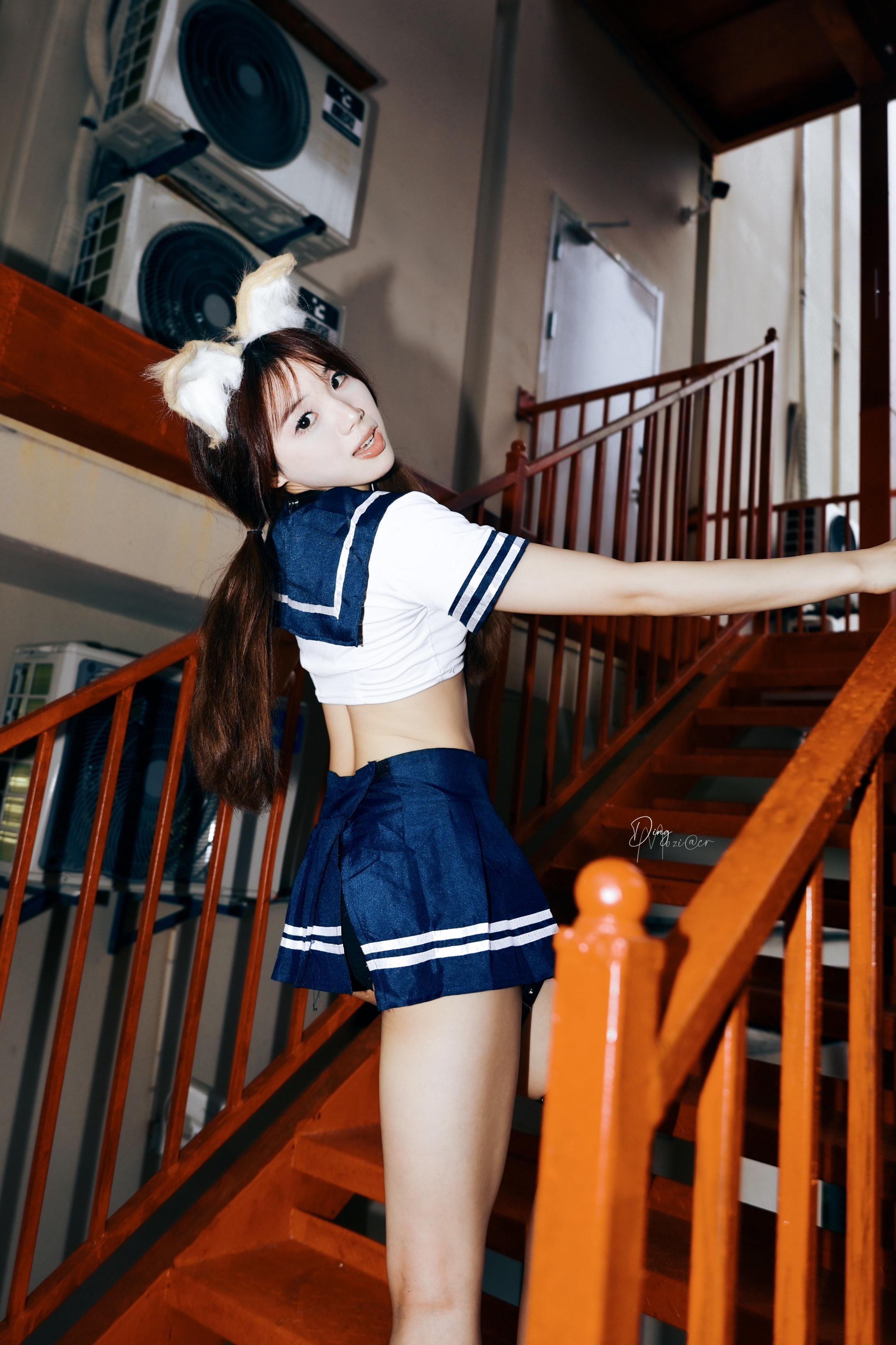 阳光明媚|感受湿润夏天的氛围感。《少女户外水里拍照》 模特