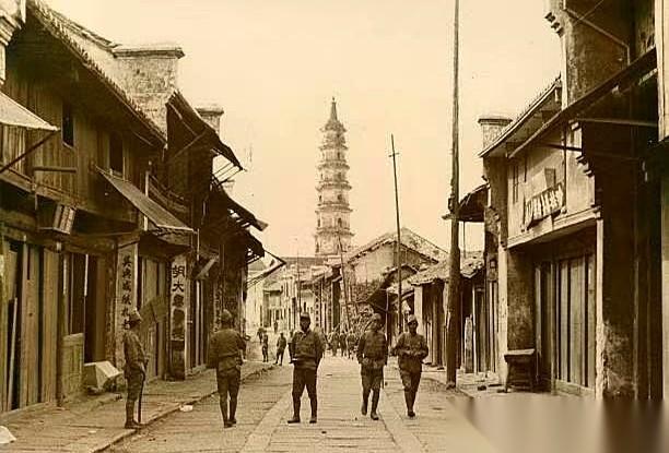 每次看到这张老照片,心里就堵得慌。 这不是什么游客照。这是1938年的岳阳,岳阳楼下,站着的是刚屠完城的日寇。 他们甚至,就在岳阳,搞了个化学武器仓库,拿活人做实验。 你敢信吗? 就是那个我们从小背“先天下之忧而忧,后天下之乐而乐”的岳阳楼。 千古名楼,凝聚着我们文化人风骨的地方,就这么被一群畜生踩在脚下,成了他们炫耀武力的背景板。 照片上,他们三五成群,晃晃悠悠,像是在逛自家后花园。 那种轻松和惬意,最让人火大。 那不是他们的家,那是我们的家。他们在我们家里烧杀抢掠,然后拍了张“到此一游”。 还有一张街景,据说跟现在的汴河街布局差不离。 一想到今天的我们,在这条街上吃着小吃,逛着街,享受着和平与安宁……而当年,同样的地方,我们的同胞可能正在躲避呼啸的子弹,或者在某个角落里无声地死去。 时空交错的感觉,让人脊背发凉。 别问当时有没有抵抗。 你看看照片里他们笑得有多轻松,就该知道,在他们看不见的地方,我们的先辈把牙咬得有多紧,把拳头攥得有多硬。 每一份看似平静的沦陷区日常背后,都藏着数不清的暗流涌动和血性胆气。 所以,别再把这些当成泛黄的历史故事了。 它就在那,清清楚楚地提醒我们: 我们脚下这片土地,是怎么从血与火里,一寸一寸,挣回来的。 岳阳楼还在,真好。 “先天下之忧而忧”的句子,我们还在背。 这就够了。