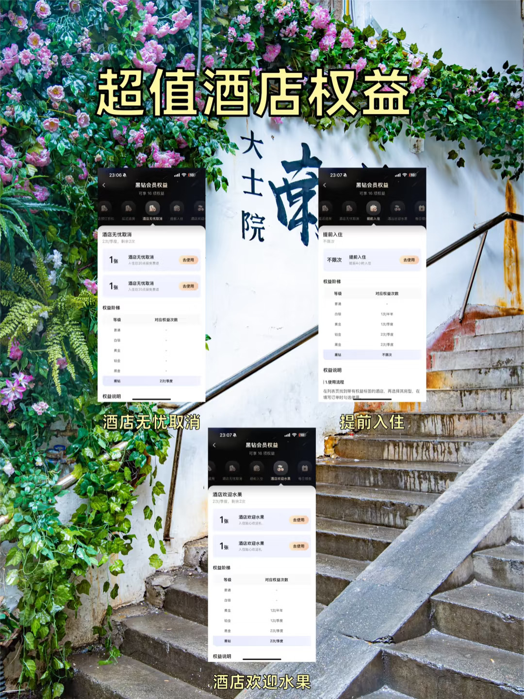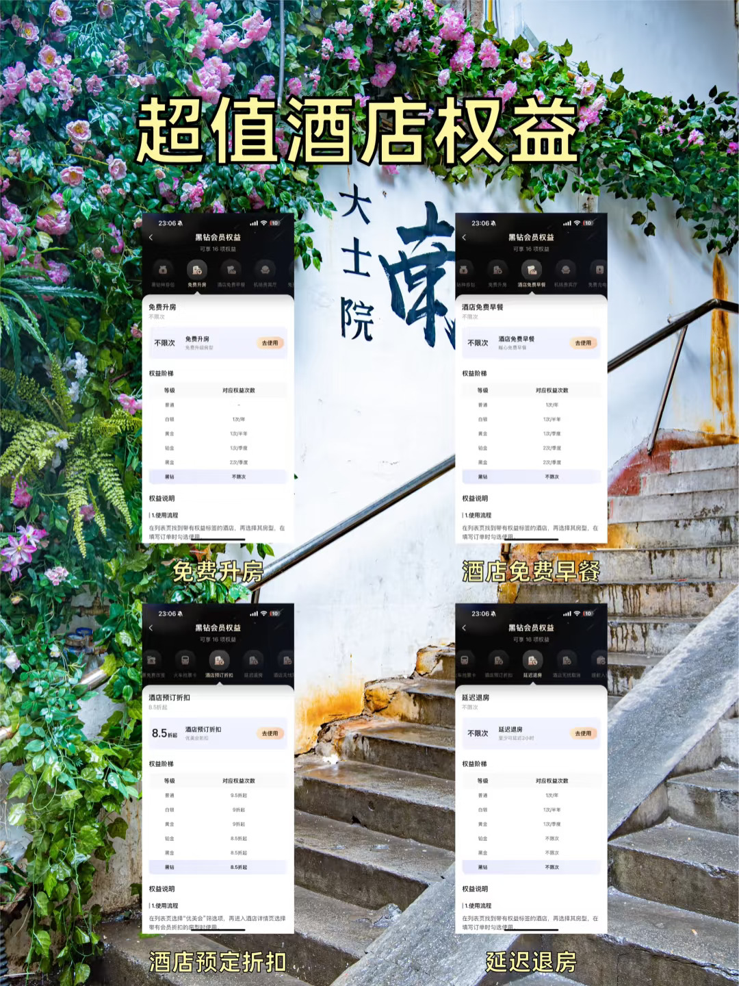 ✔️找使用酒店权益,预定酒店8.5折起、免费早餐、免费升房等解决大问题