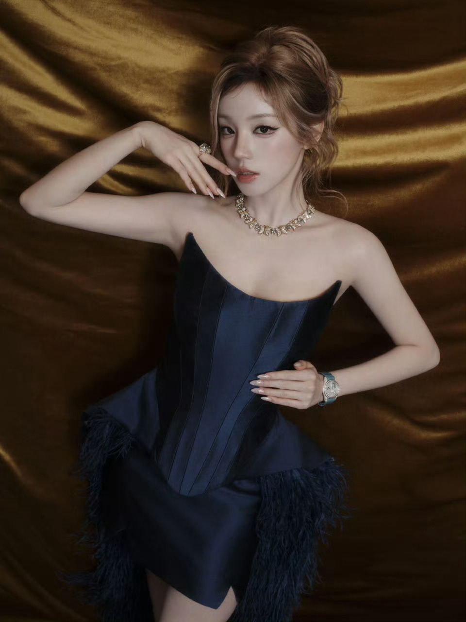 蓝色拖尾长裙