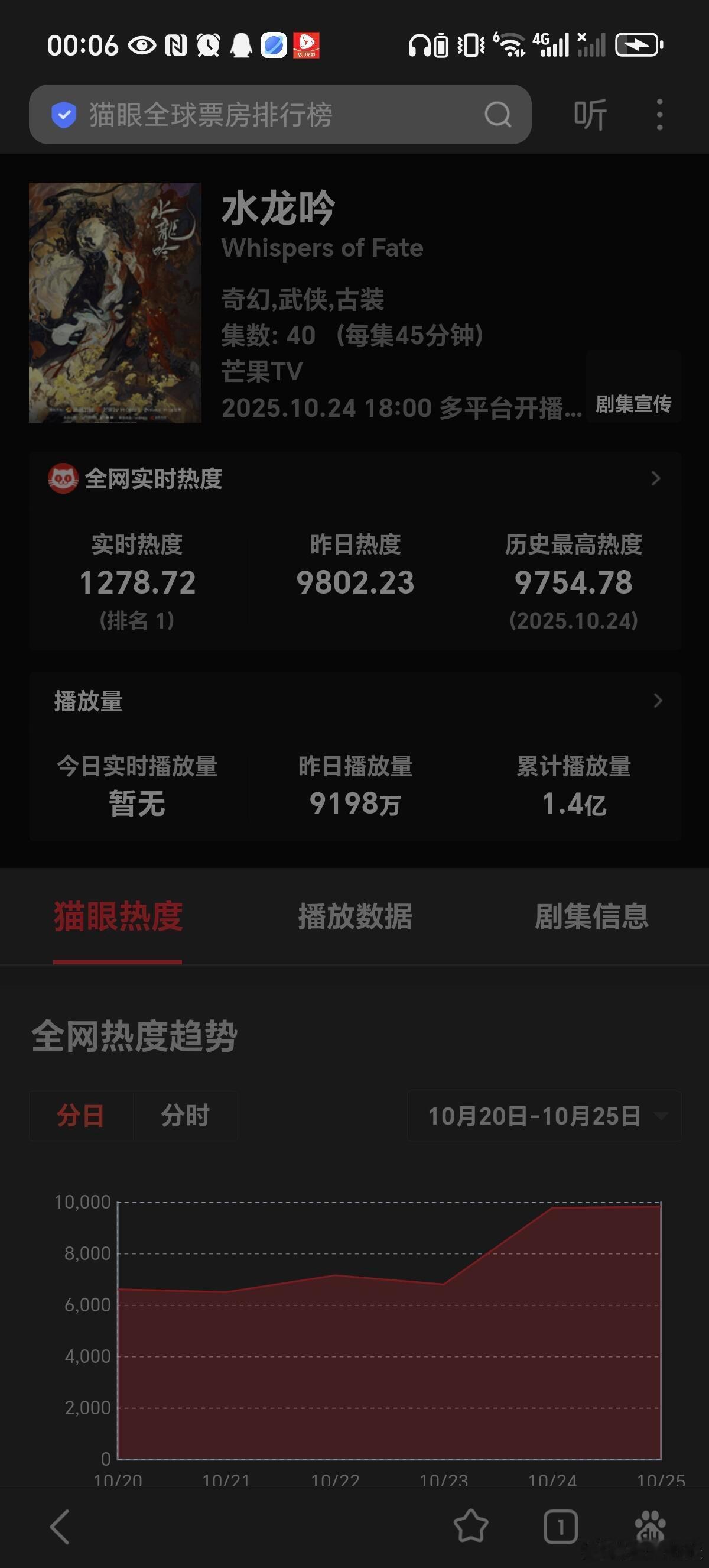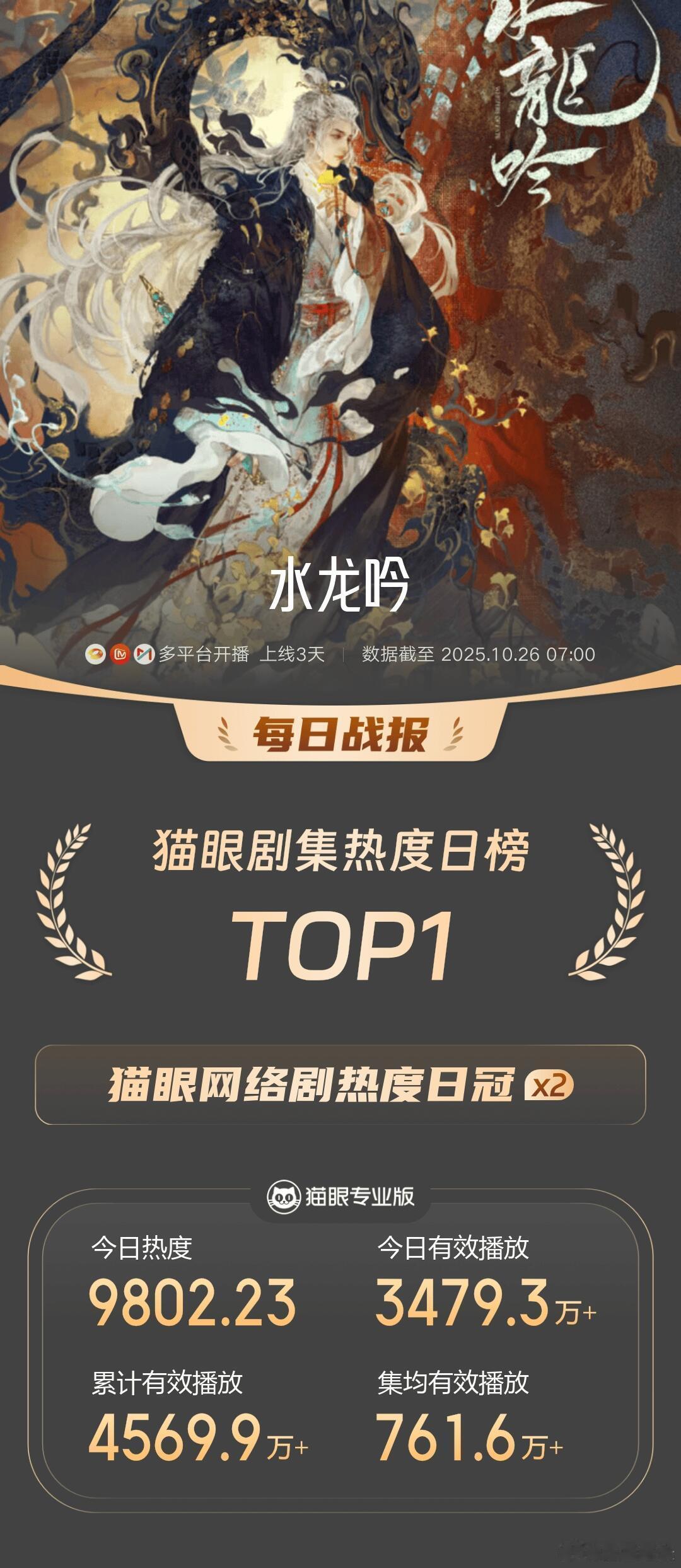水龙吟猫眼德塔文双登顶恭喜水龙吟剧播第二天德塔文破2荣居top1,猫眼热度连续两天top1!🥭站内播放量 超1.5亿,咪咕站内热度连续两天破万!〖数据截止10月25号〗水龙吟微博视界大会