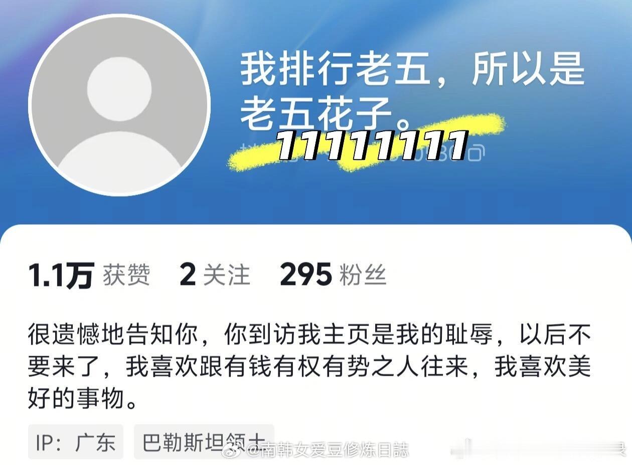 很遗憾地告知你,你到访我主页是我的耻辱,以后不要来了,我喜欢跟有钱有权有势之人往来,我喜欢美好的事物。