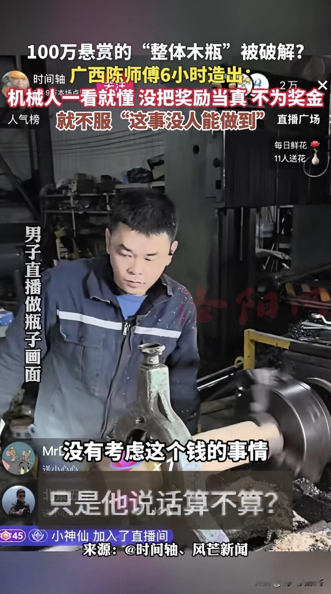 号称无人能复制的“木瓶哥”全网悬赏100,结果没想到广西陈师傅仅花6小时就用车床完成了,这简直就是啪啪打脸。而且陈师傅不仅用车床完成了,和原版几乎一模一样,每一步还有录像为证,甚至把内孔处理得更光滑。有些人沉浸在自己的世界里“闭门造车”,却不知这世上人外有人,天外有天。现在全网喊他兑现那100万赏金,他却假装看不到,完全是言而无信。