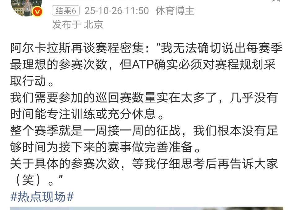阿卡关于赛程安排有话要说:新球场慢了很多,网球赛程必须调整。 本周进行的巴塞尔和维也纳公开赛已有包括阿里亚西姆、沙波瓦洛夫、鲁德、格里克斯波、安贝尔等多位球员因伤中途退赛。