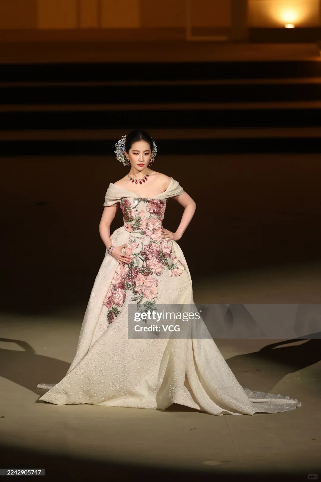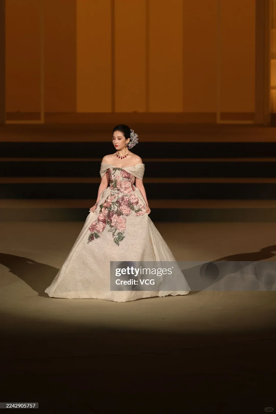 一袭鎏金长裙漫步在鎂光灯下