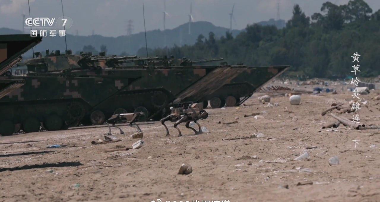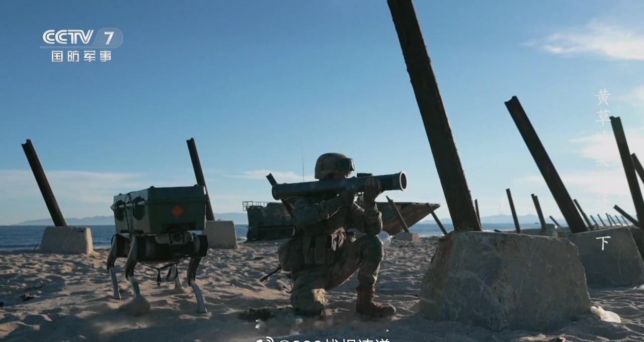 🇨🇳⚡️中国人民解放军进行了一次模拟沿海登陆的演习,展示了集成的机器人和无人机系统:突击/侦察机器狗带领队形,FPV无人机提供实时支援,四旋翼中继器保持通信,后勤机器狗向前线部队运送弹药和榴弹发射器。 中国军事烽火问鼎计划