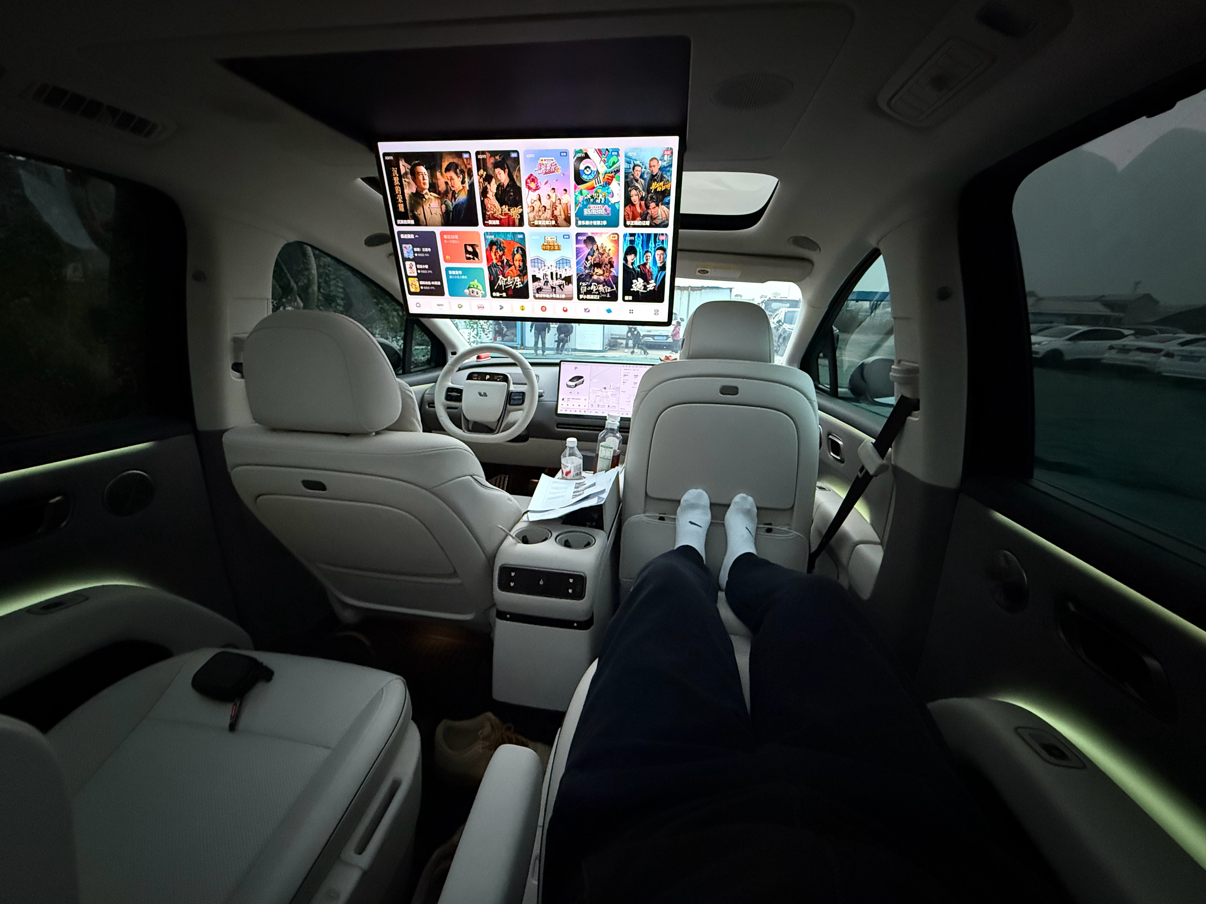 零重力打开、座椅按摩打开、后舱娱乐屏打开!