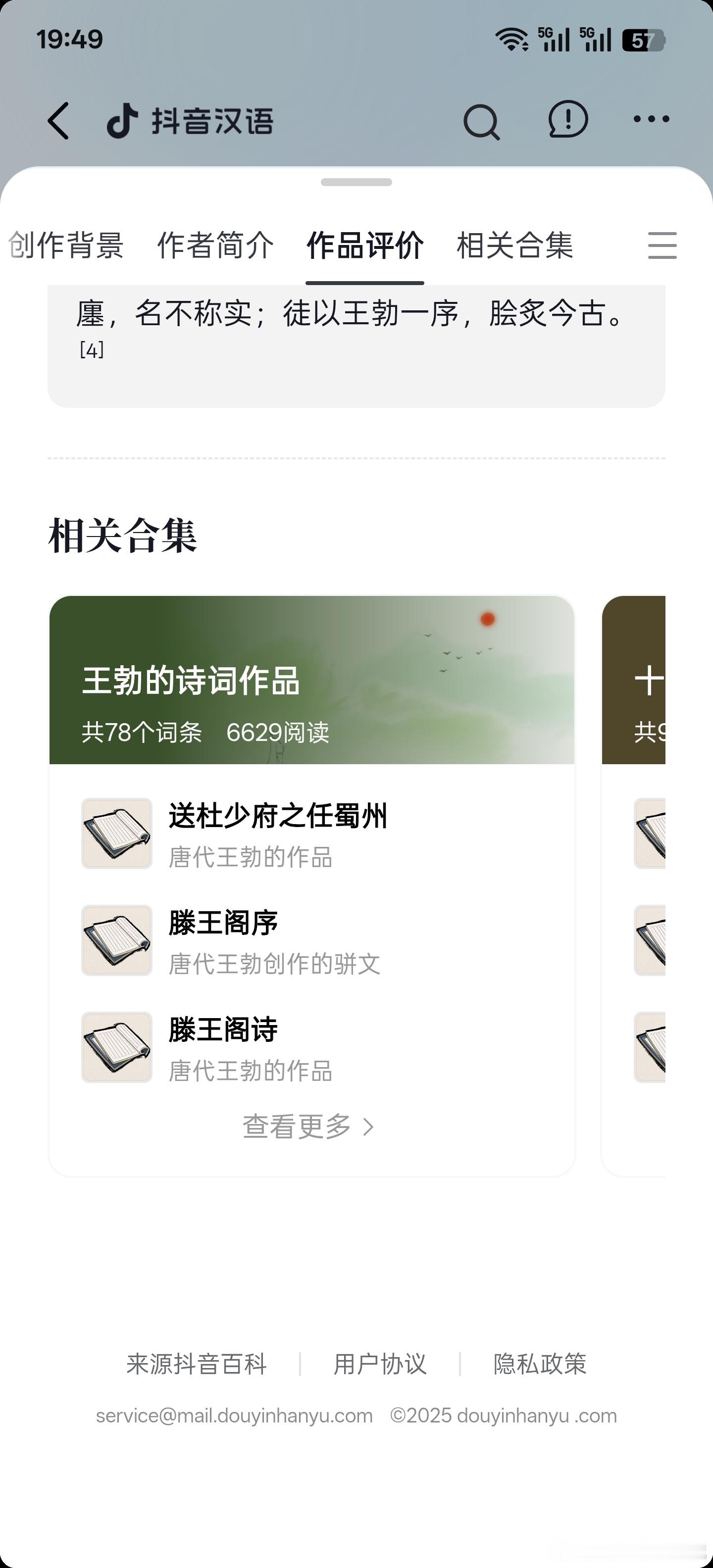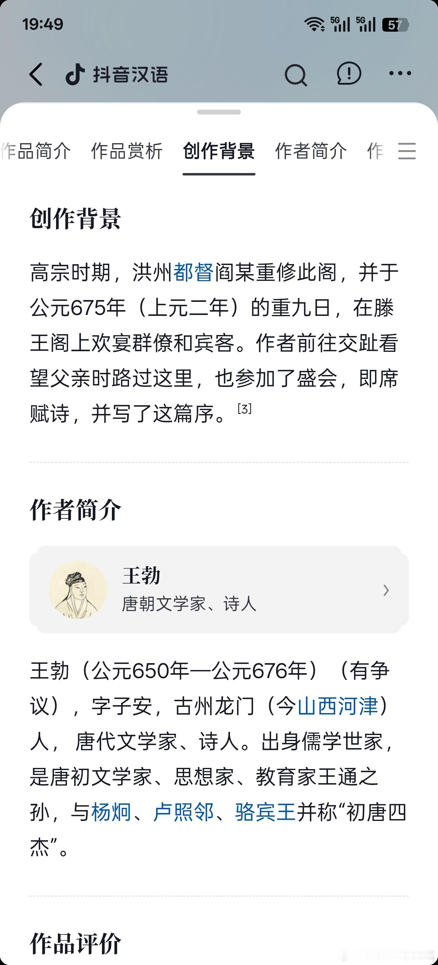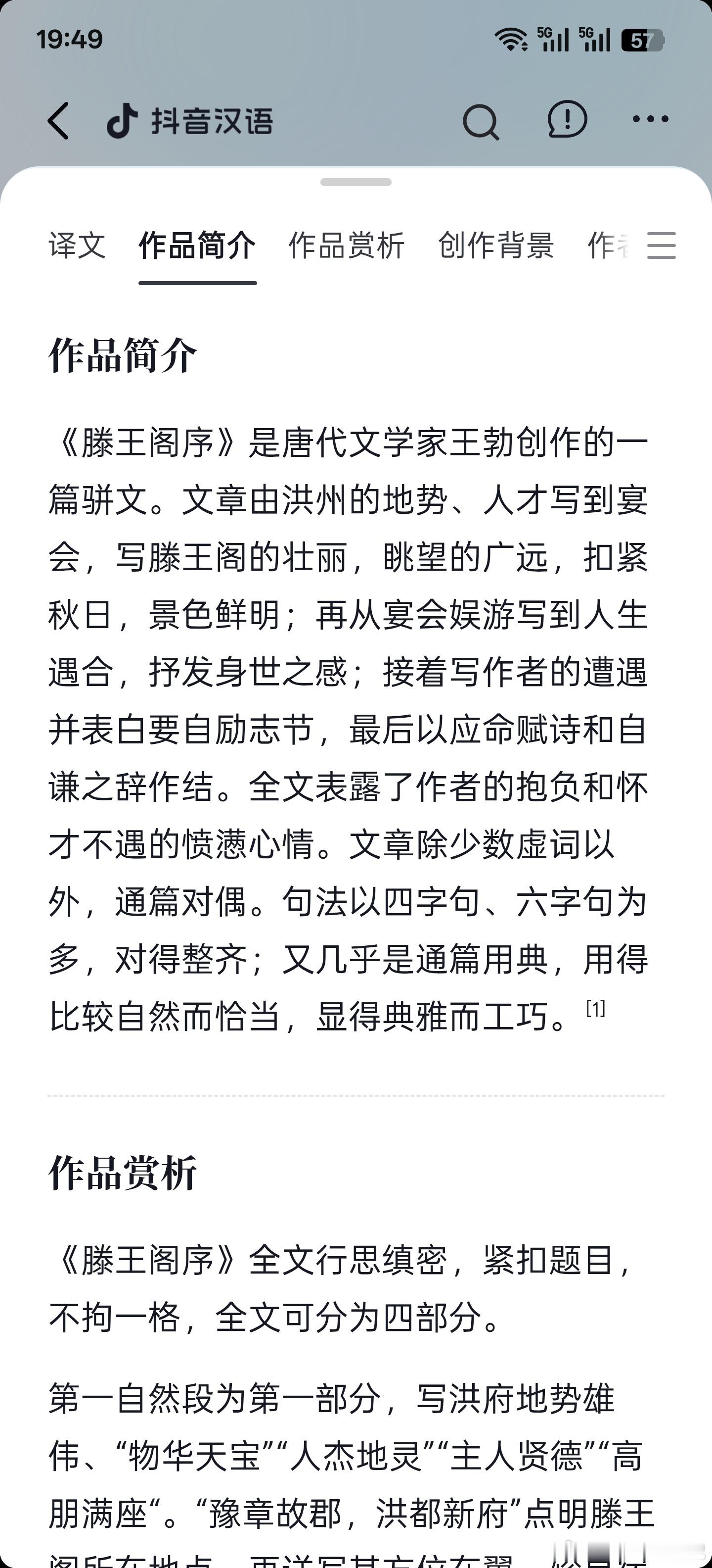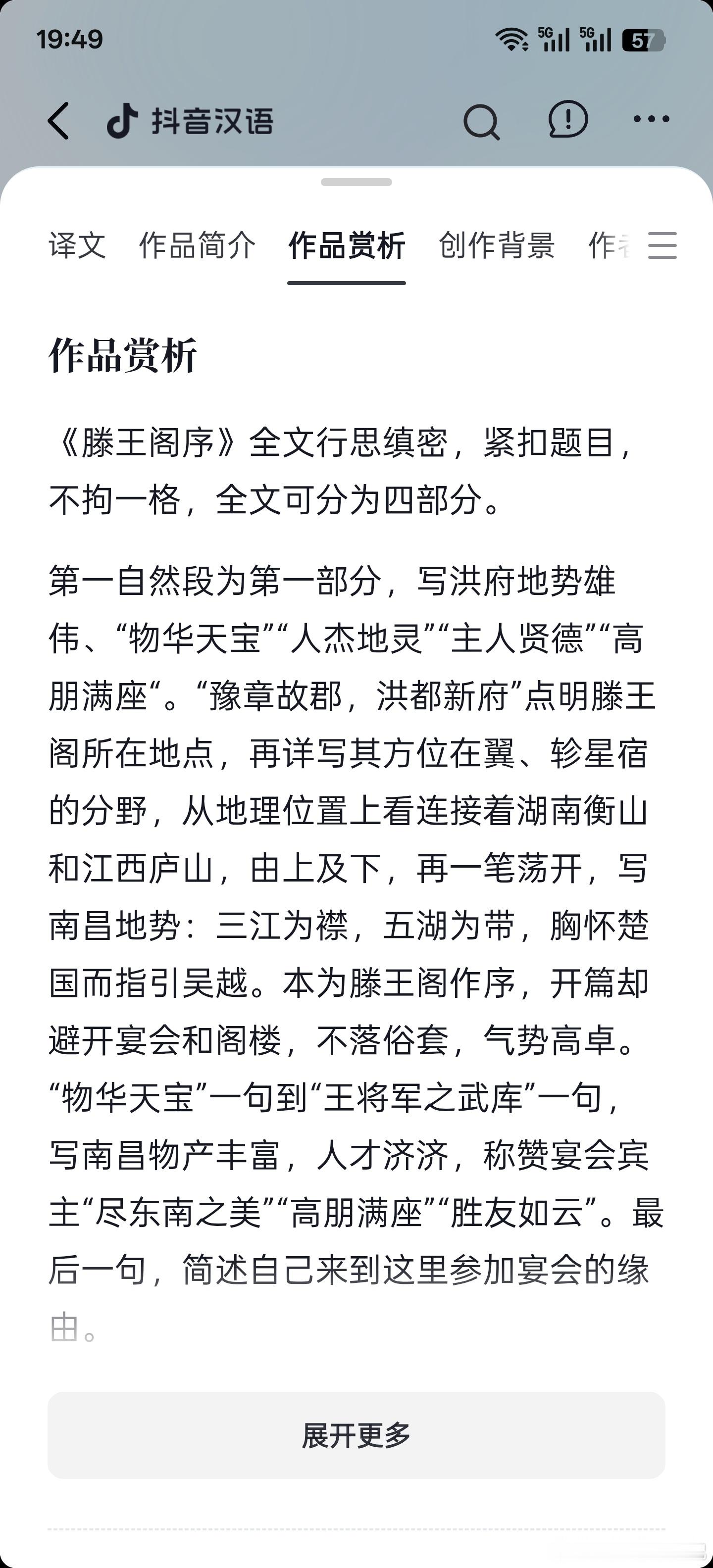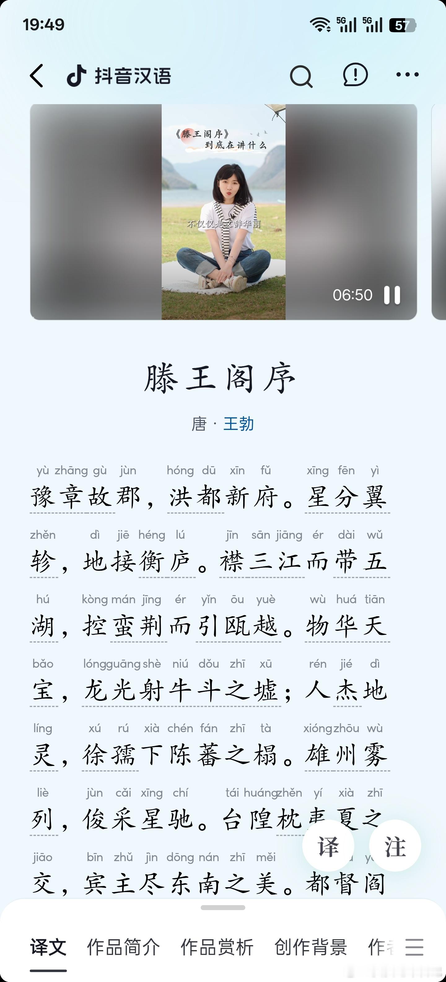 无意中在抖音里,点进了王勃的传世名篇《滕王阁序》,没想到现在抖音把古诗词的相关学习都整理得这么完备了…
