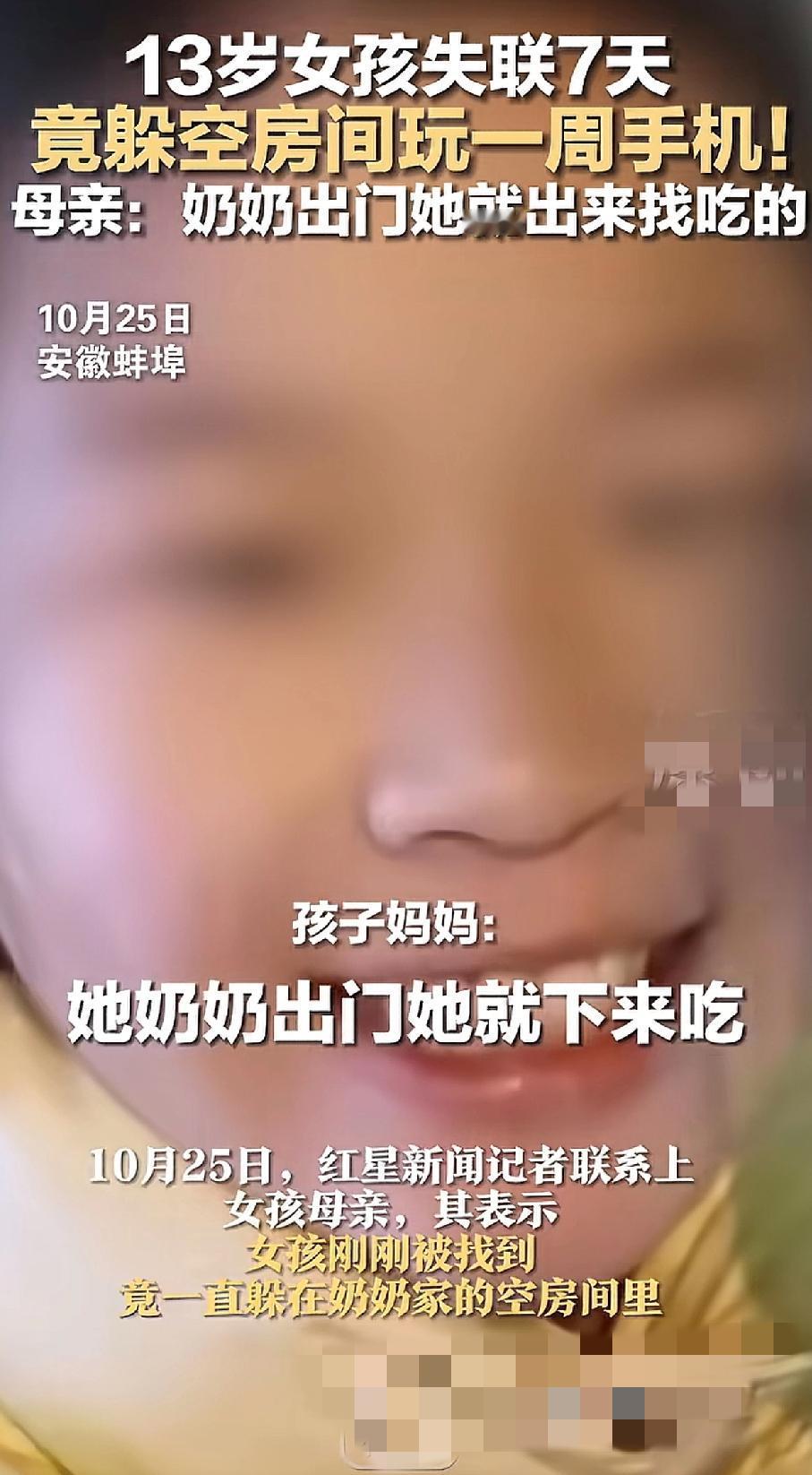 安徽蚌埠,一名13岁女孩失联7天,结果在空房间找到。令人没想到的是女孩竟然偷偷的
