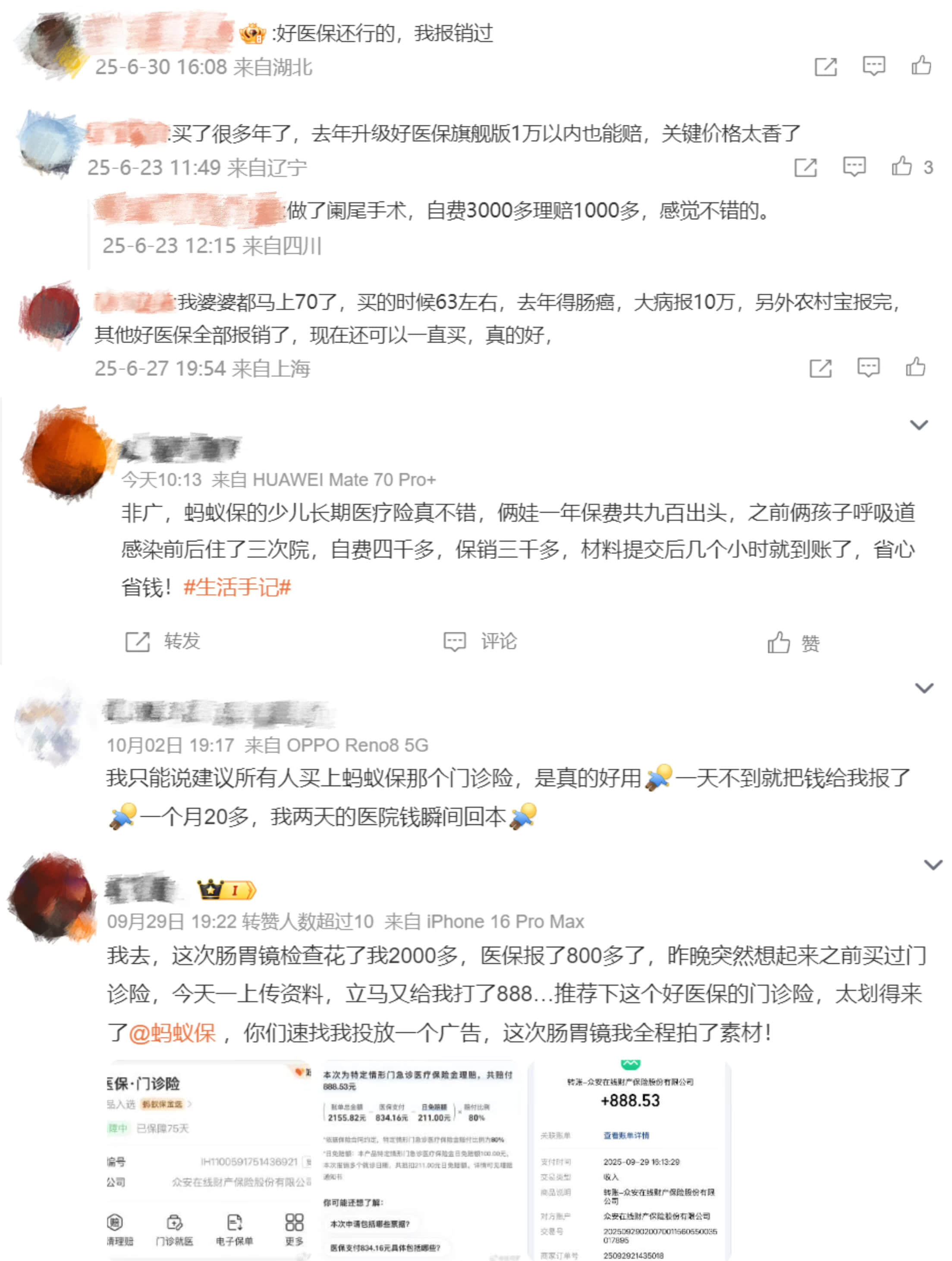 所以,看到节目里给戏剧人送保险那段,真的还蛮有意义的,不仅关注到了大部分人的难题,更是给到了解决方案。就比如蚂蚁保上很多人都在买补充的医疗险,真的能在生病的时候帮上大忙,起码能在要用贵药、好药的时候,不用犹豫钱,放心大胆的用,非常适合30+的大家作为首要考虑的保险。