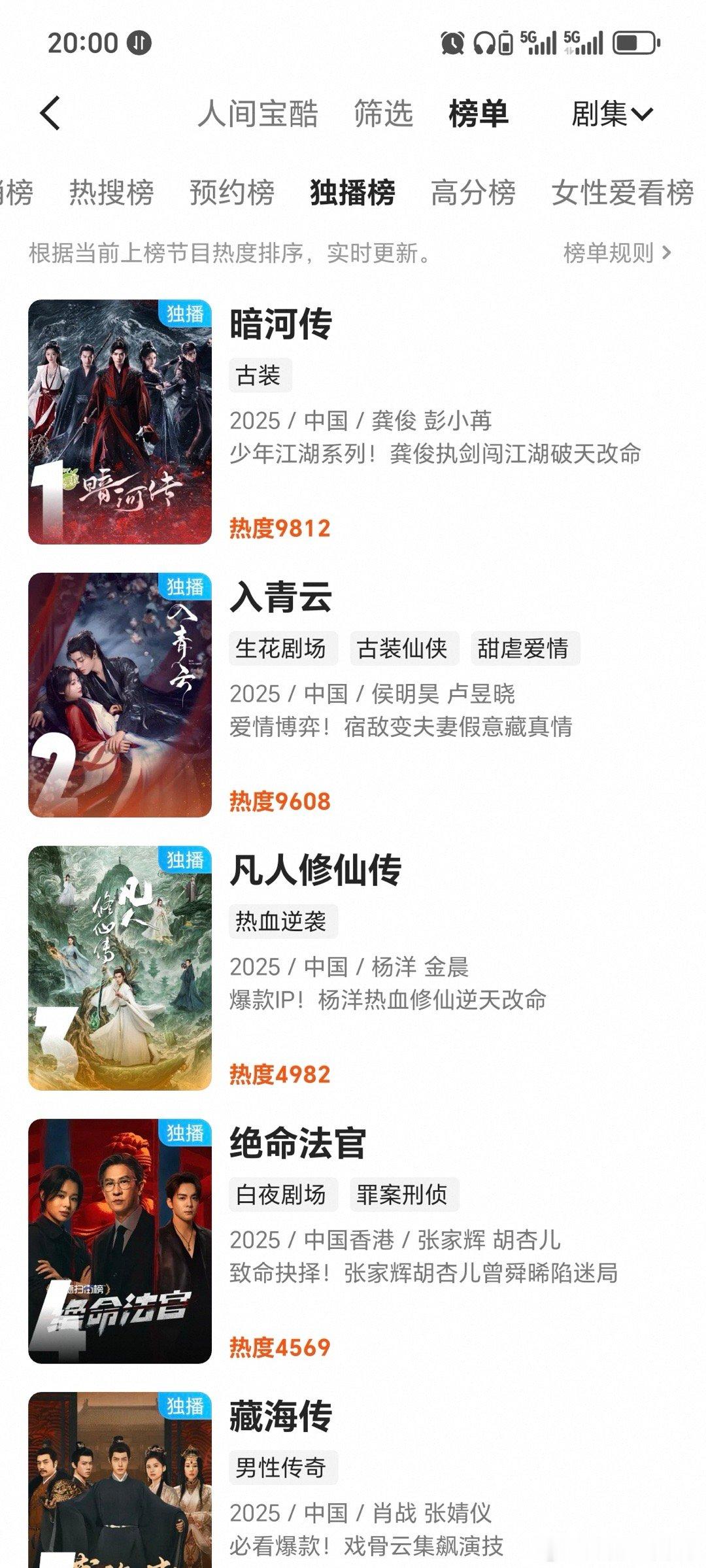 好牛啊龚俊的暗河传热度优酷站内热度破万了!一点点的涨热度,好口碑也在持续发酵。