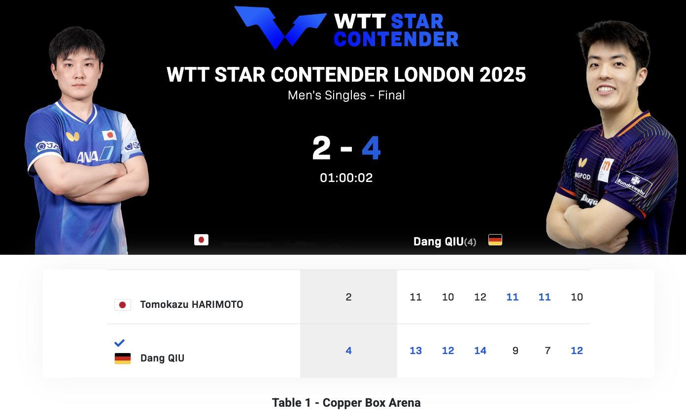 邱党🇩🇪获得WTT球星挑战赛伦敦站男单冠军🥇🎉