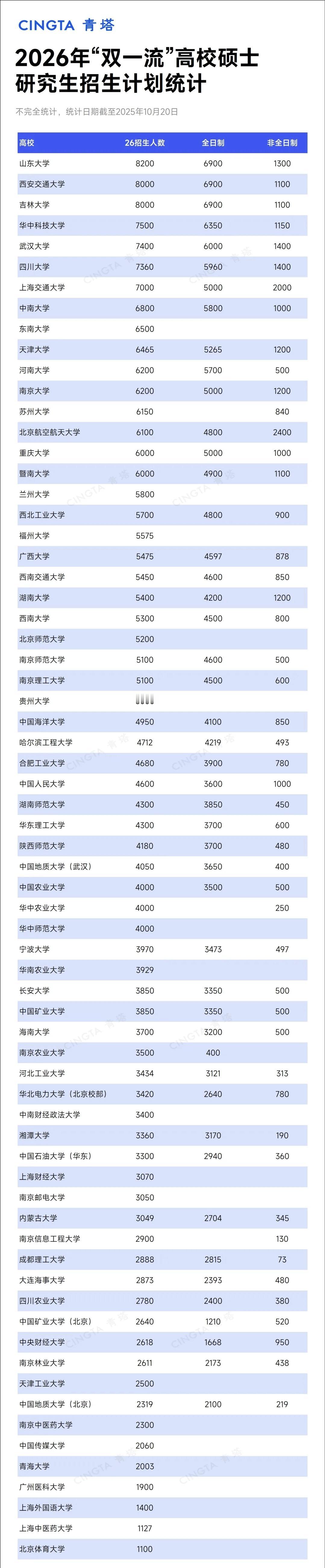 考研难度下降!学校研究生招生扩招加上报考人数下降,考研上岸的机会越来越大了。这对那些正在奋力考研的学生来说,绝对是一件大好事! 有最新数据显示,53所“双一流”准备扩招硕士,最多扩招880人!西交,吉大和山大准备招生超过8000人,吓不吓人,还以为是一届本科生人数。武大和华科也破了7000人,湖北的教育真恐怖,尤其武汉市,大学生研究生如过江之鲫,多的很,好的工作机会却很少,毕业后都跑广东了。 山东大学、西安交通大学、吉林大学这三所大学的全日制招生人数均为6900人,并列第一,加上非全日制,每年招收研究生超过八千人。 第二梯队的是华中科技大学、武汉大学、四川大学、上海交通大学等7所高校,它们的招生总人数也超过了7000人。这些高校不仅拥有庞大的学科门类,更是区域人才输送的核心引擎,其扩招体现了国家对高层次基础研究和复合型人才的巨大需求。 在扩招幅度上,陕西师范大学以880人的增幅居首,其次是武汉大学的500人和中南财经政法大学的400人。 扩招这么多,宿舍住的下吗?湖南师大因为扩招,宿舍都住不下,居然还有二十人的大通铺,你能想象研究生的住宿环境还这个样子吗? 有些学校干脆不提供住宿,研一可能还有,研二开始就要自己找房子住了。有些非全日制或者专硕,研一就没有,需要自己解决住宿问题。这对很多学生来说,是一笔很大的开销,尤其一线城市的学生,房租还是不便宜的,尤其大学周边。