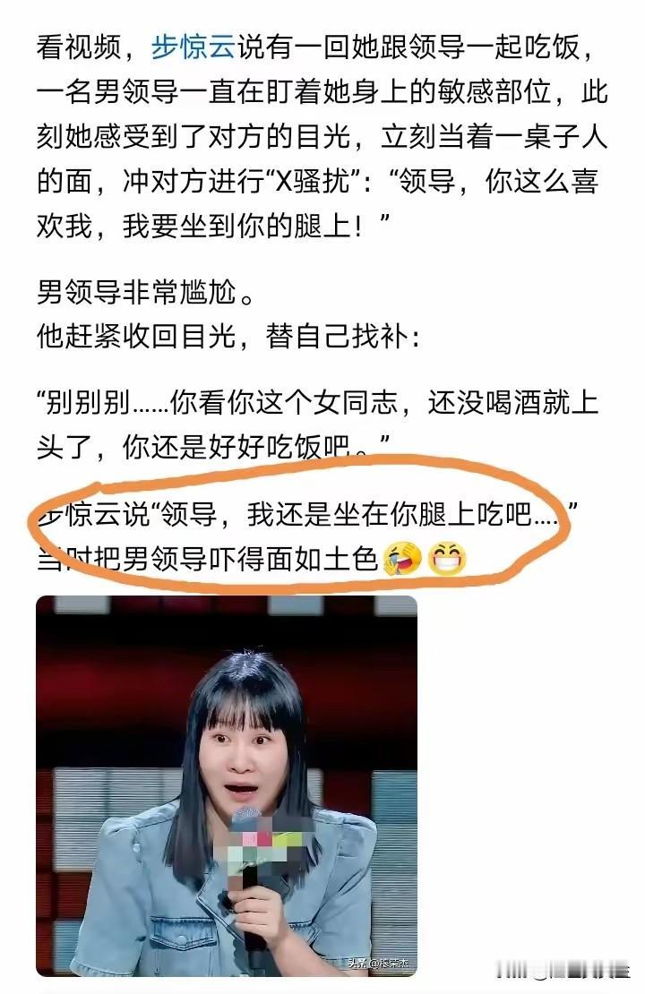 看步惊云关于*骚扰的脱口秀,没觉得男性有什么实质性的骚扰行为,所谓男凝警告都是她个人的一面之词,她上来说要坐人家领导腿上反倒像是*骚扰[狗头][狗头][狗头]。 她就代表了很多女拳的行为,是不是*骚扰全靠自己感觉,就跟男生觉得哪个女生喜欢他一样离谱[捂脸][捂脸][捂脸]。 方媛脱口秀
