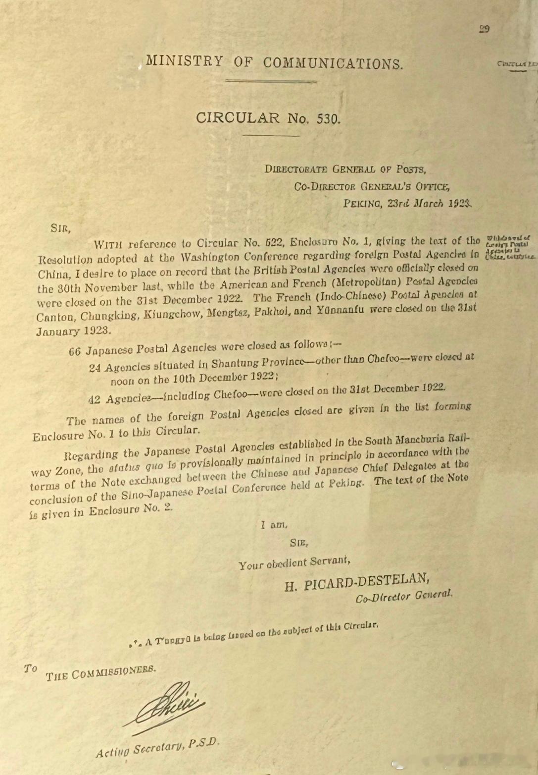 1923年交通部邮政总局通令,各国在华“客邮”局关闭通告历史影像