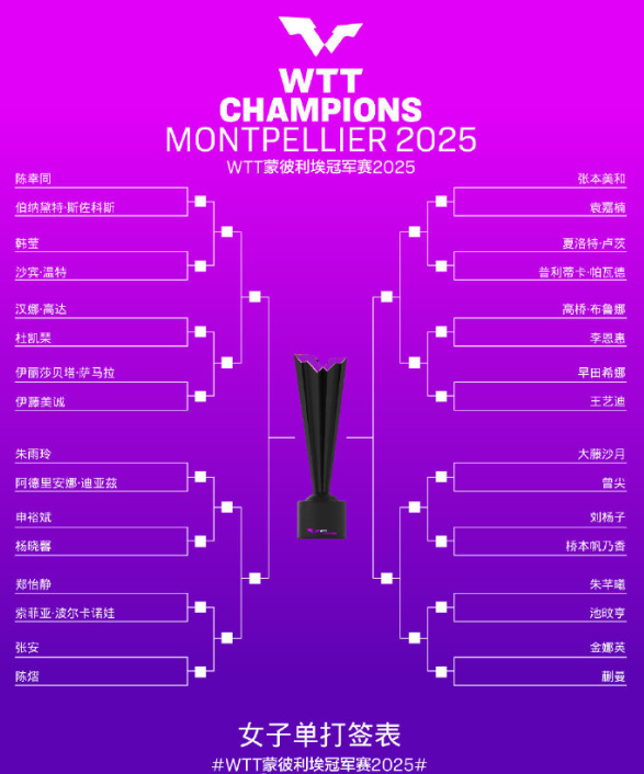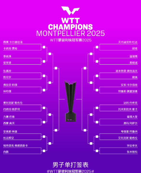 WTT蒙彼利埃冠军赛抽签仪式结束,勒布伦兄弟担任抽签嘉宾,首轮内战扎堆!一共有7场比赛是同协会队友的遭遇战。 韩莹🇩🇪VS温特🇩🇪 夏洛特卢茨🇫🇷VS帕瓦德🇫🇷 李尚洙🇰🇷VS安宰贤🇰🇷 力廉巴德🇫🇷VS西蒙高茨🇫🇷 杜达🇩🇪VS邱党🇩🇪 卡尔伯格🇸🇪VS莫雷高德🇸🇪 宇田幸矢🇯🇵VS张本智和🇯🇵