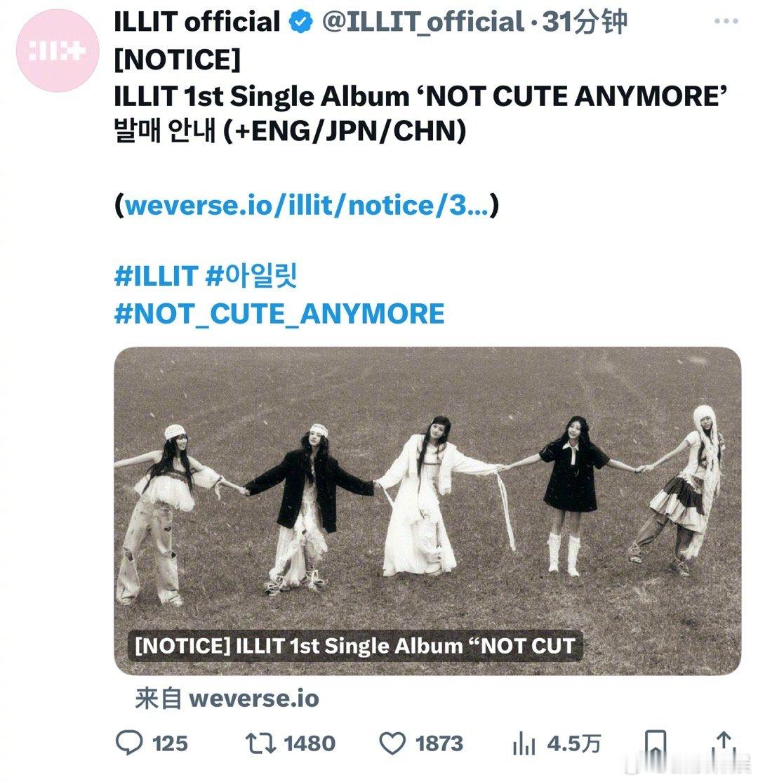 ILLIT回归预告ILLIT将于11月24日发行单曲专辑《NOTCUTEA