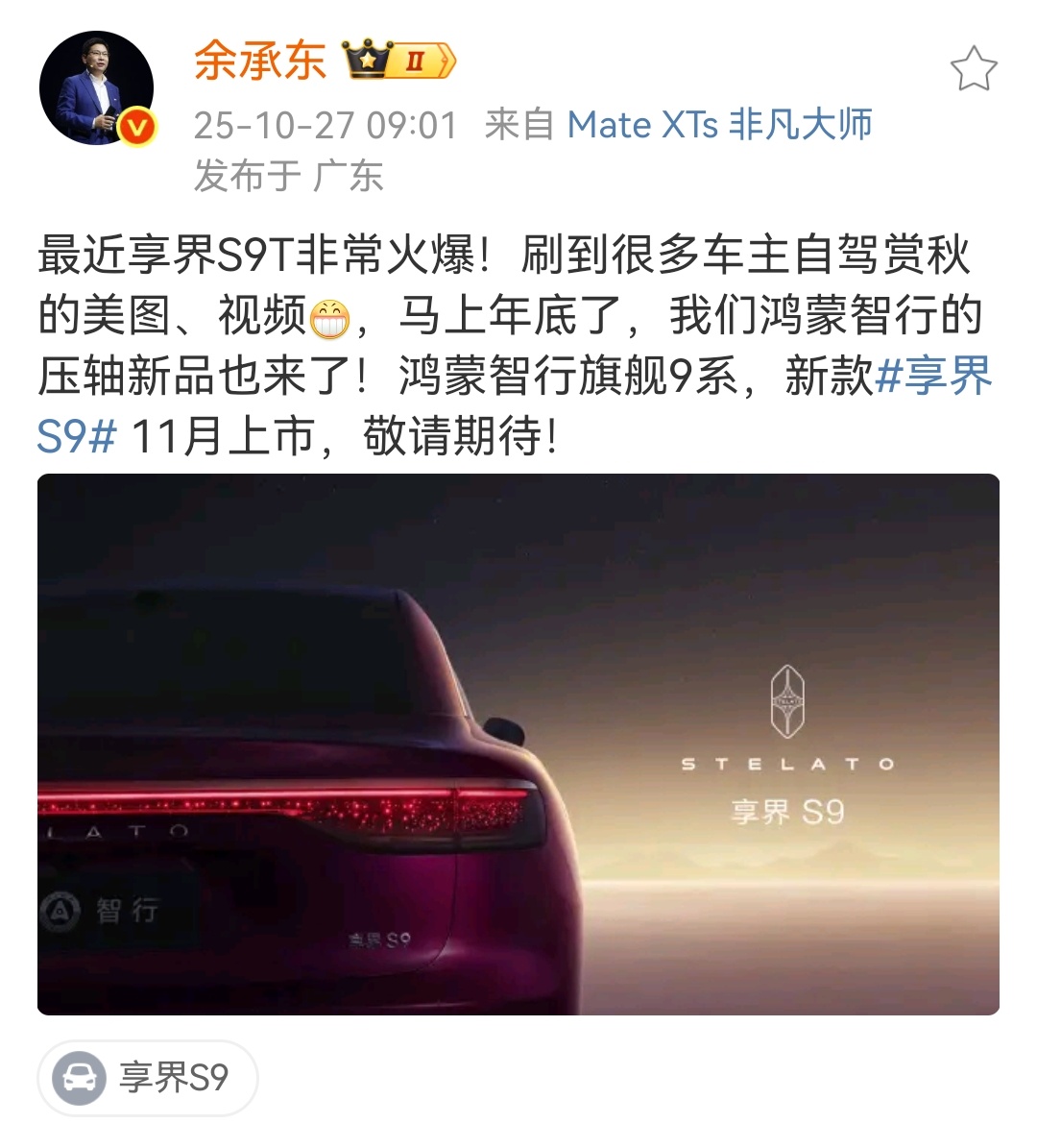 新款享界S9也要来了,看官图,这次升级很全面,实体车标有了,星云尾灯也有,据说还支持支持智慧电动门选装,期待期待!