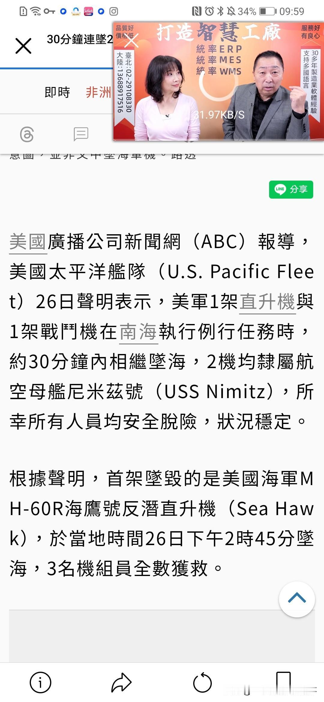 美军在南海出大事!昨天30分钟连续2架军机坠毁! 美国总统出访时,向来有出动访问区域附近航母舰队巡航的传统!这几天川普访问马来西亚参加东盟峰会,美国太平洋区域的“尼米兹号”航母舰队进入南海巡航。但就在昨天(10.26)下午隶属该航母舰队的两件军机在半小时内先后坠毁,所幸5名机组人员活了下来。先是下午2点45分H-60R海鹰号反潜直升机坠毁,半小时后,下午3点15分,一架F/A-18F超级大黄蜂战斗机坠毁! 美军在南海遭遇了什么?大家都猜测!
